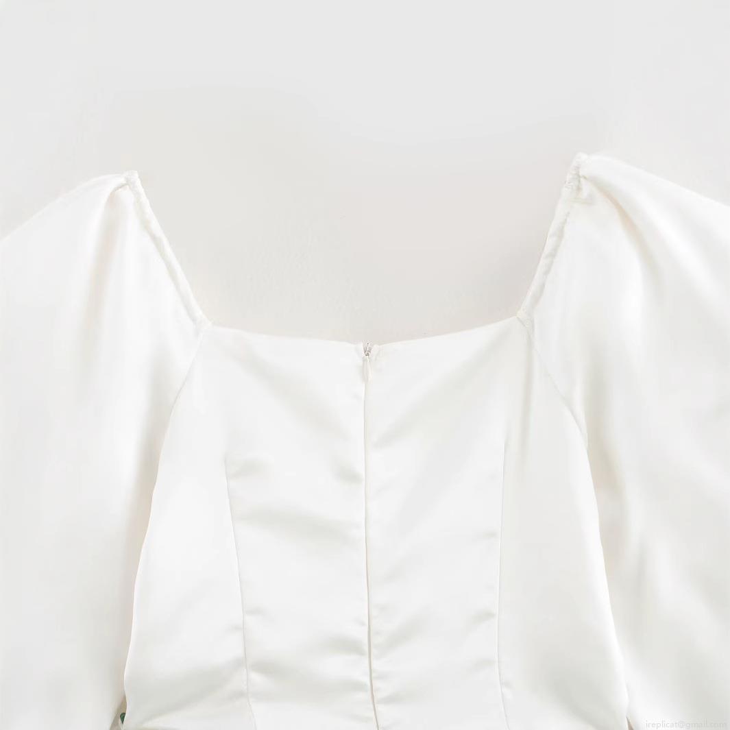 Solid Color, Waist shaping, Gathering, Puff Sleeves, Square Collar, Zipper Decoration
