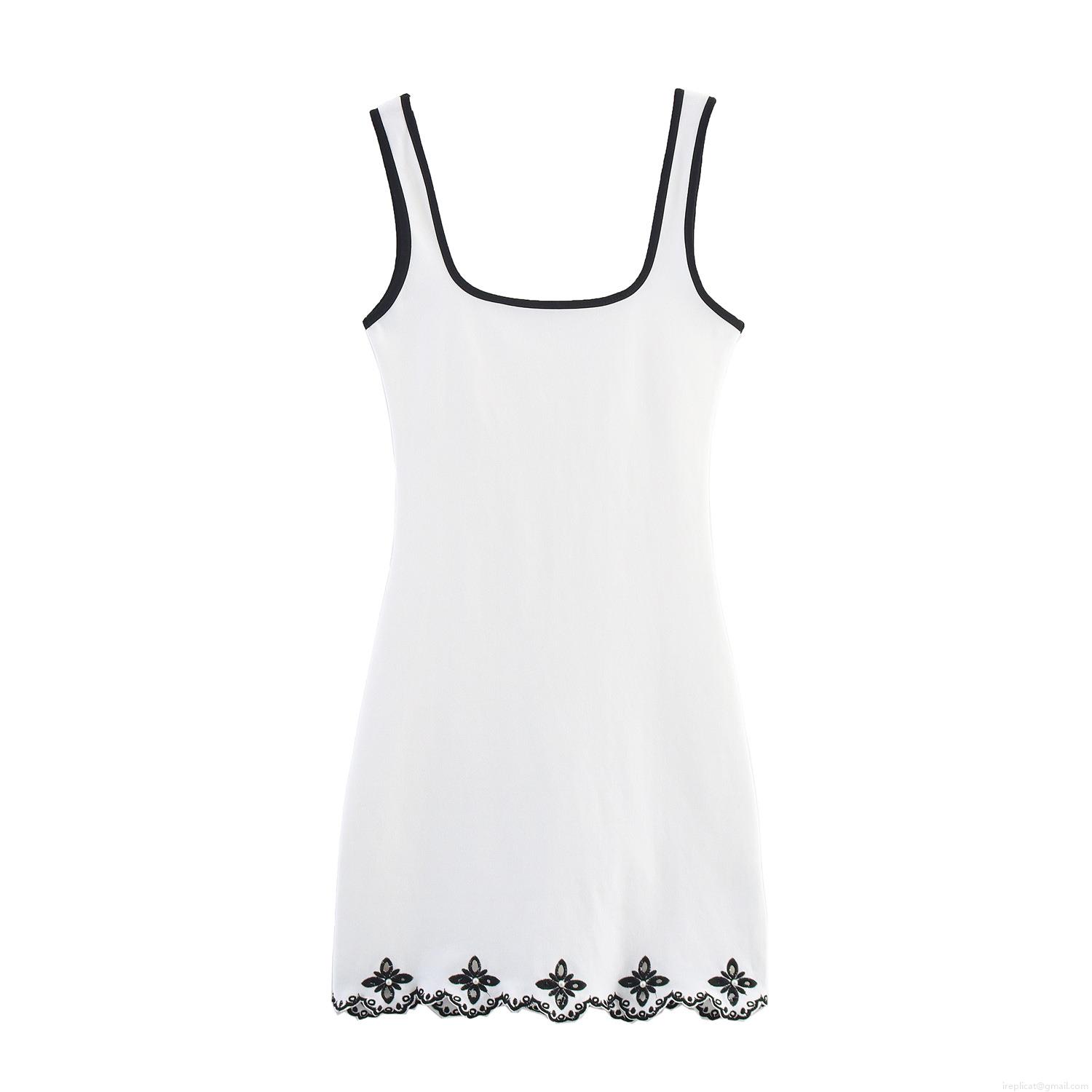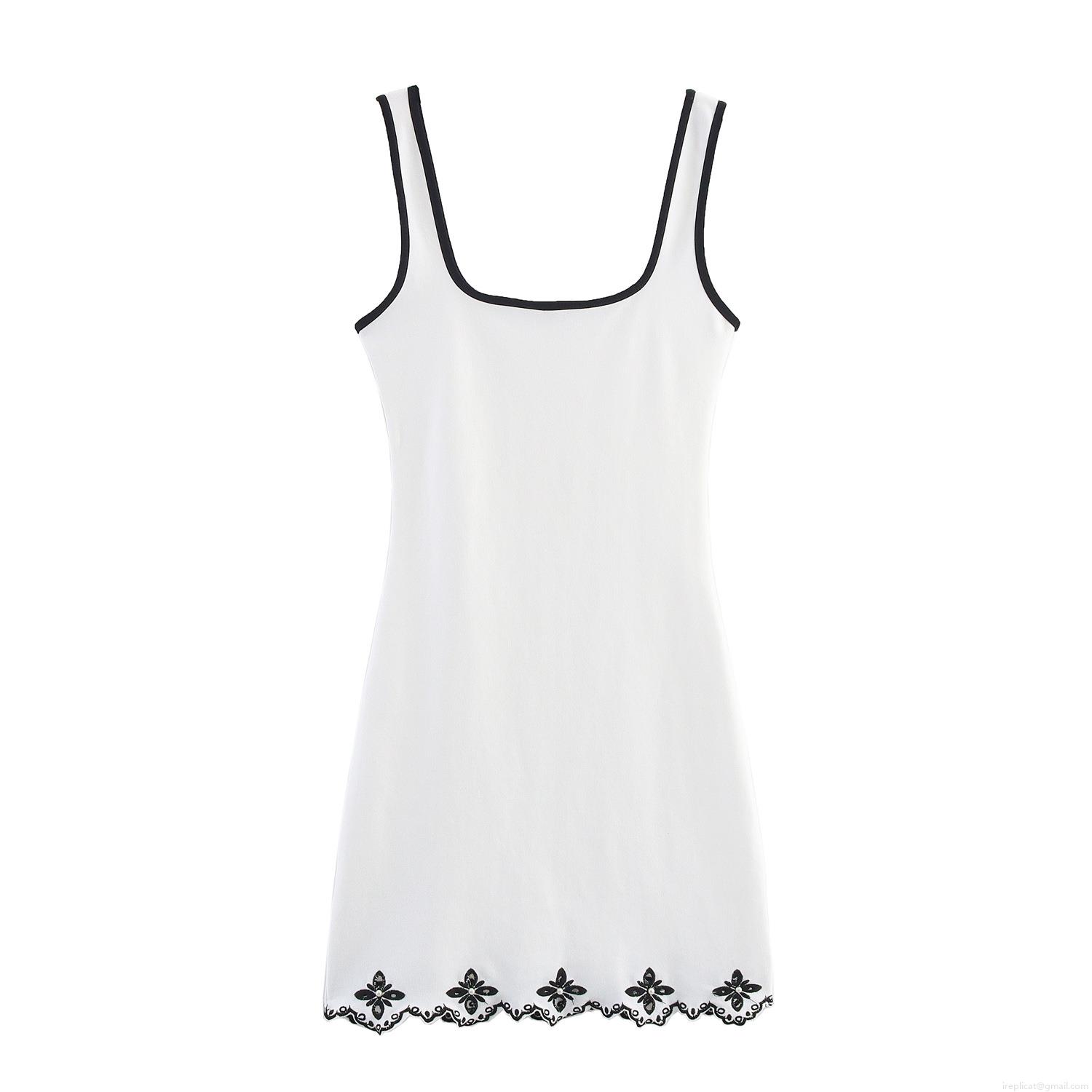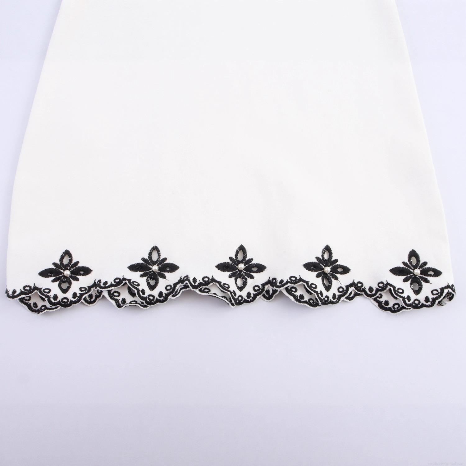• Women's White Slip Mini Dress Cotton Blend Contrast Trim Black Floral Embroidery Pearl Embellished Sexy Bodycon Dress For Party Summer Vacation Elegant