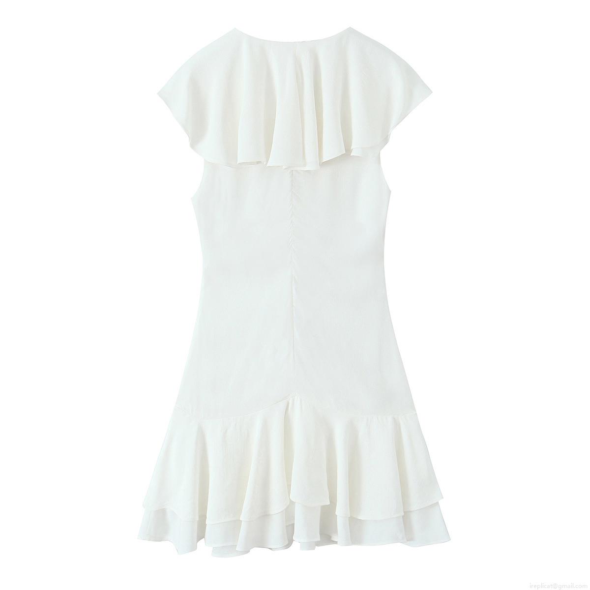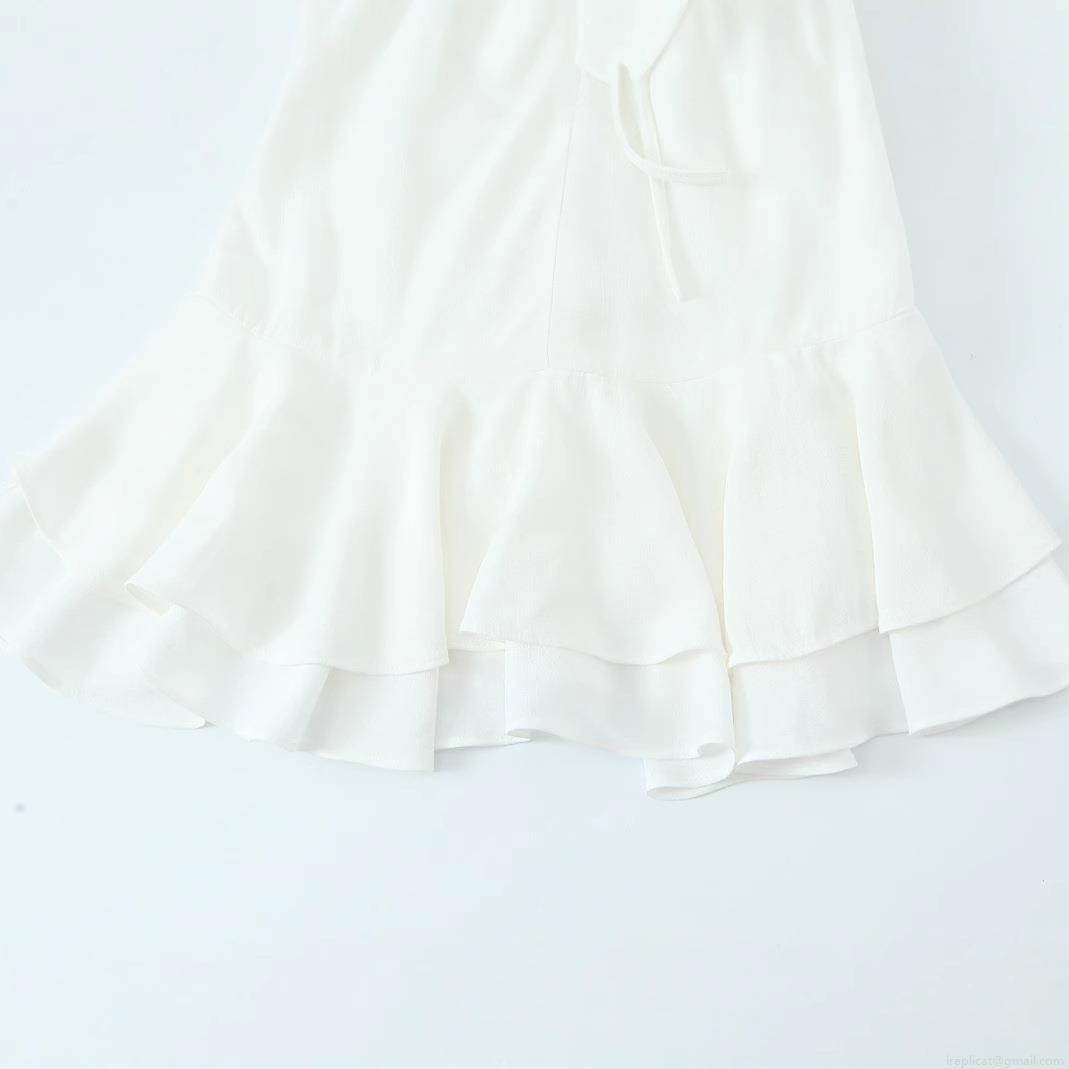 • Women's White V-Neck Sleeveless Ruffle Mini Dress Elegant Layered Cake Skirt With Bow Tie Front Summer Sexy Party Dating Short Dress For Ladies