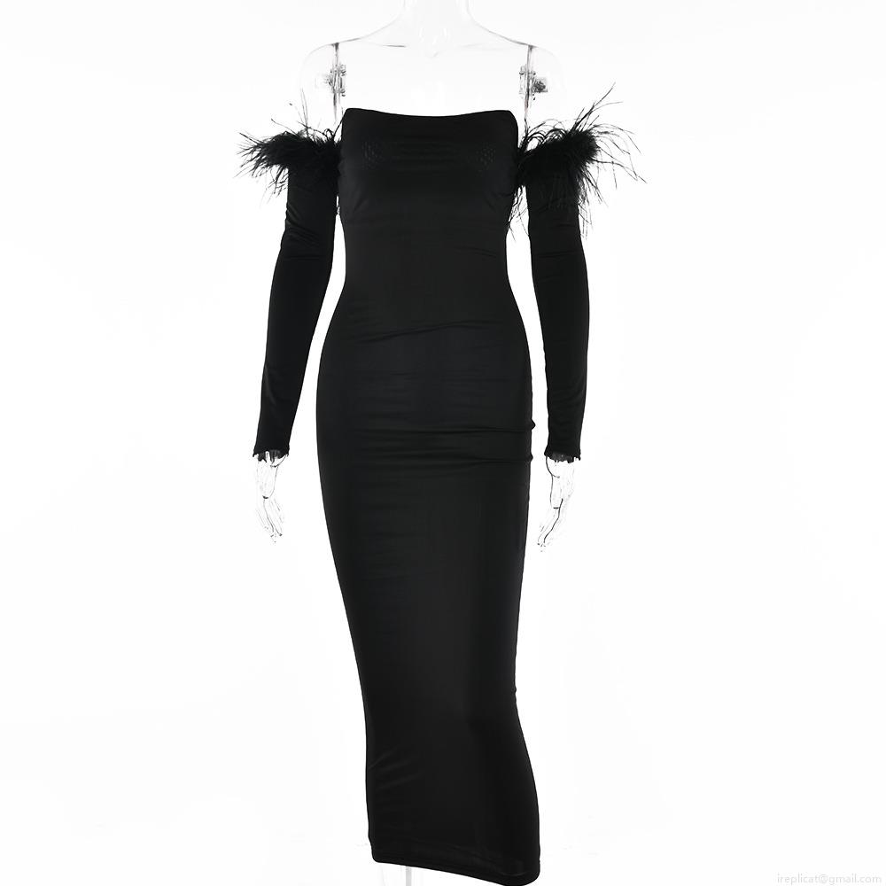 • Elegant Bodycon Maxi Dress Off Shoulder Feather Sleeve Backless Sexy Long Dress For Women Party Evening Club Wedding Gown Slim Fit Polyester Formal Outfits