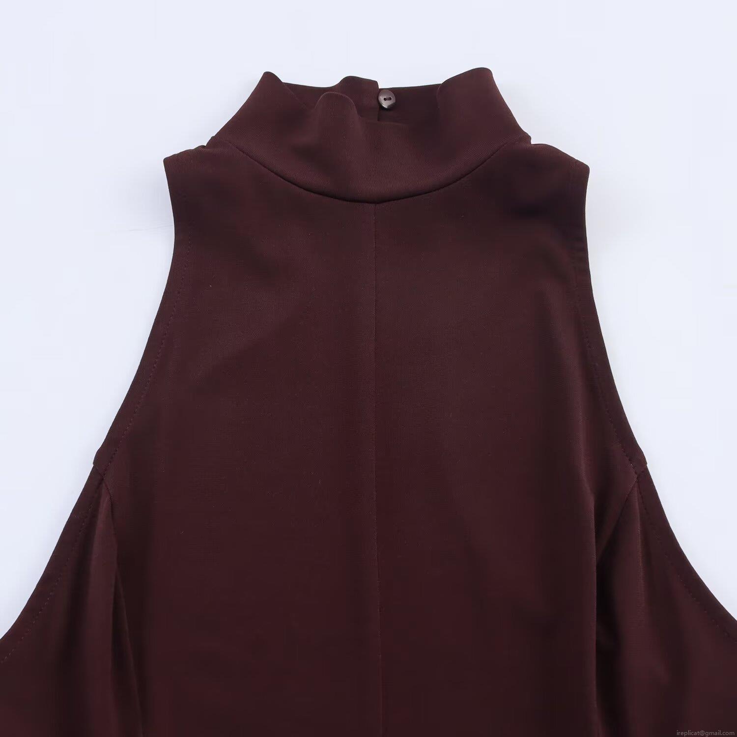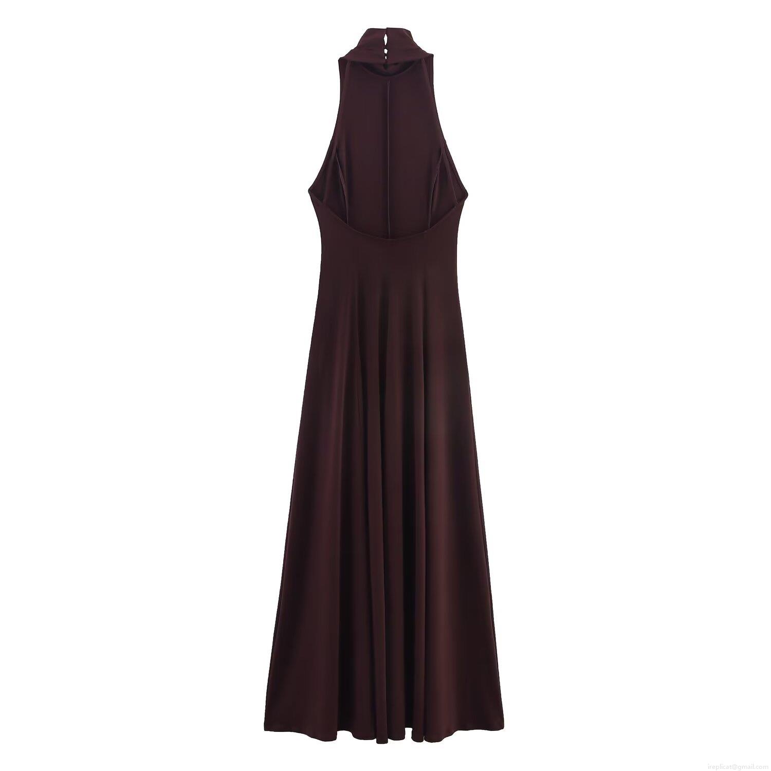 • Elegant Halter Neck Backless Maxi Dress Knitted Slim Fit Evening Party Long Dress For Women Sexy Solid Reddish Brown Prom Ball Gown
