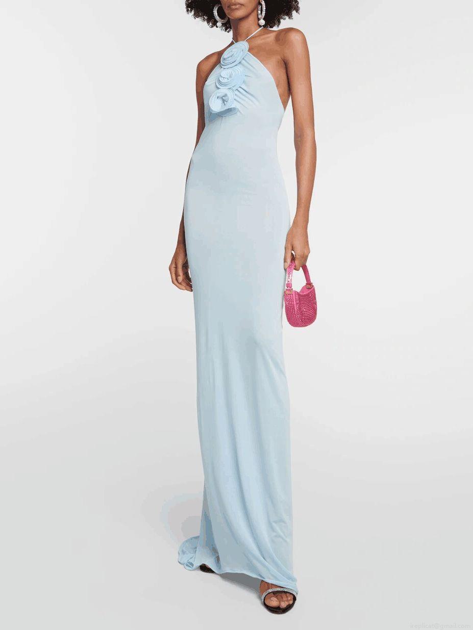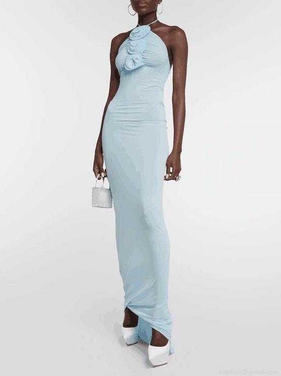 • Elegant Halter Neck Maxi Dress with 3D Rose Flower Decoration Sexy Backless Sleeveless Mermaid Bodycon Long Dress for Women Wedding Guest Evening Party Prom Gown