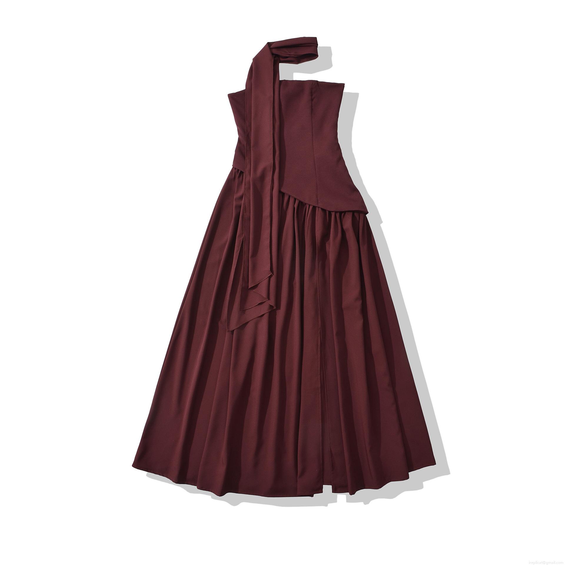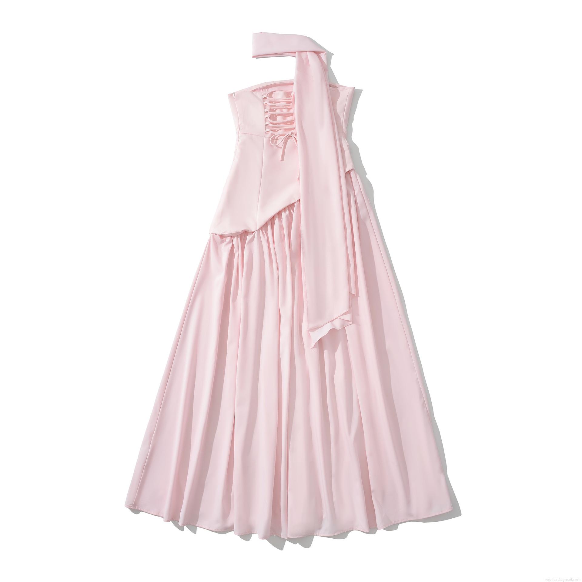 Invisible Zipper, Cross Straps On The Back, Long Ribbon Decoration Around The Neck, Accordion-pleated Skirt