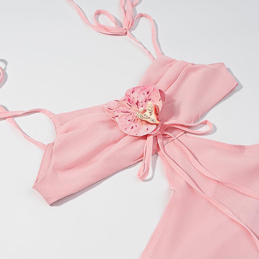 • Elegant Pink 3D Orchid Flower Cami Dress Women Sexy Hollow Out Backless Satin Long Maxi Dress For Party Evening Club Cocktail Wear