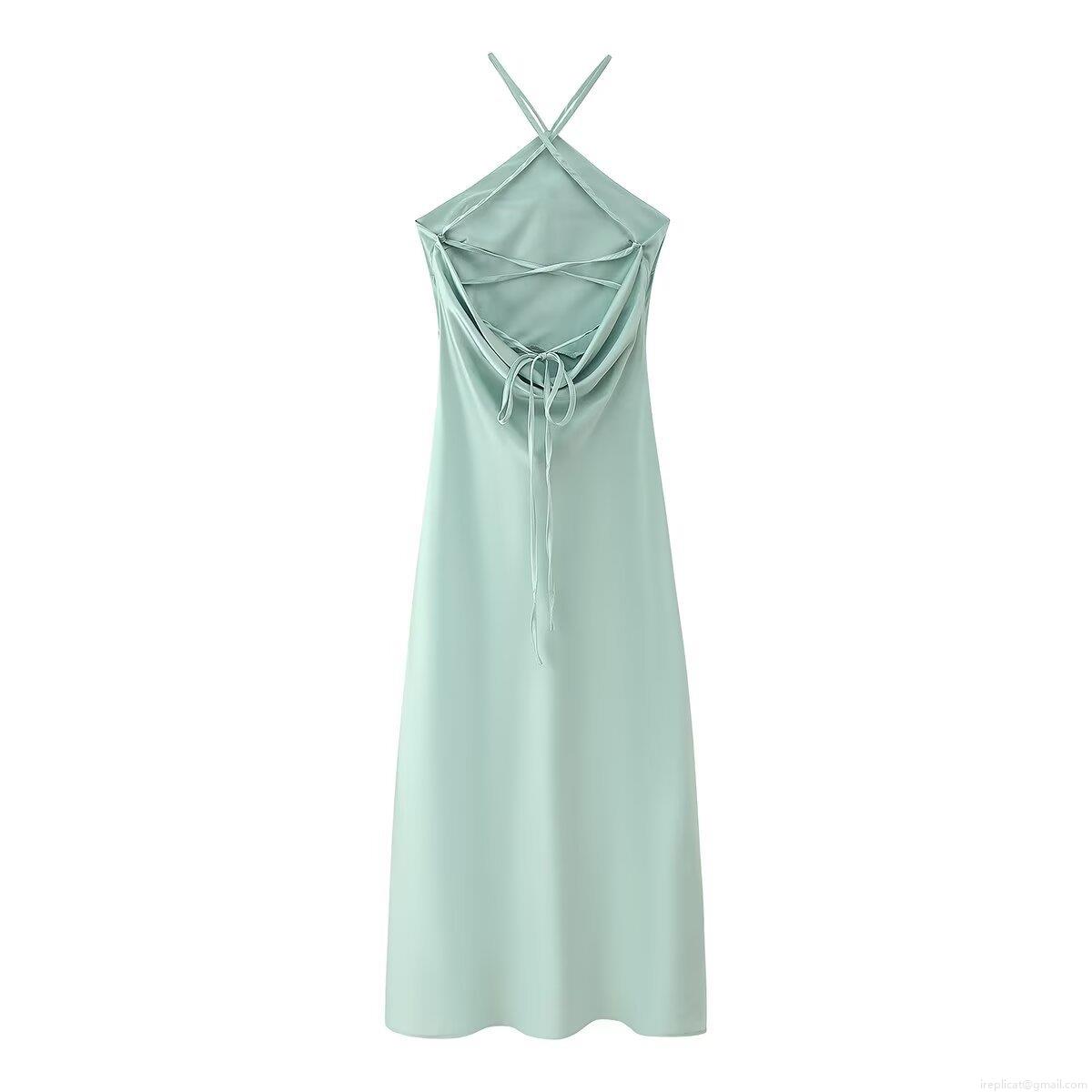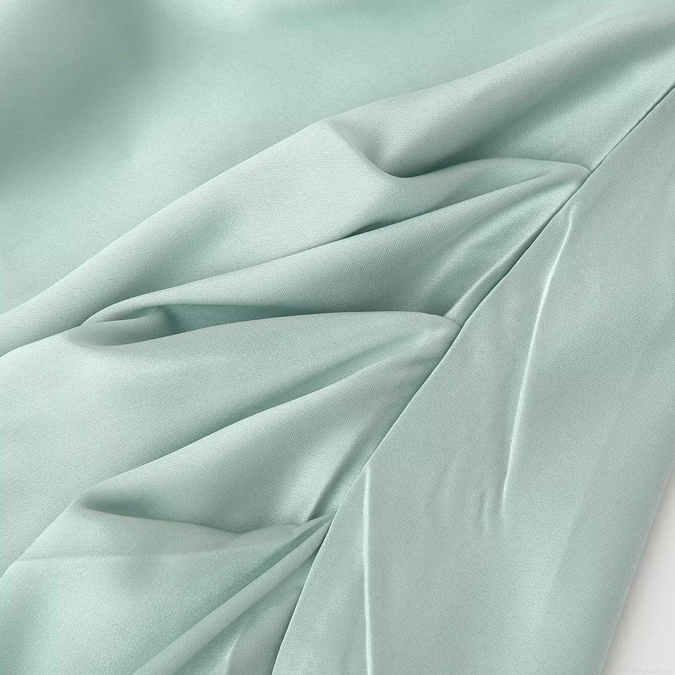 • Elegant Sage Mint Green Satin Halter Backless Maxi Dress For Women Sexy Pleated Waist High Slit Evening Party Wedding Guest Formal Evening Gown