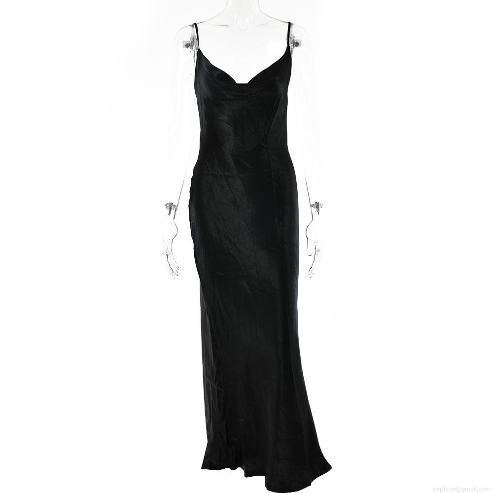 Elegant Satin Cami Dress Women Sexy Cowl Neck Backless Spaghetti Straps Evening Party Club Wedding Prom Maxi Silk Gown
