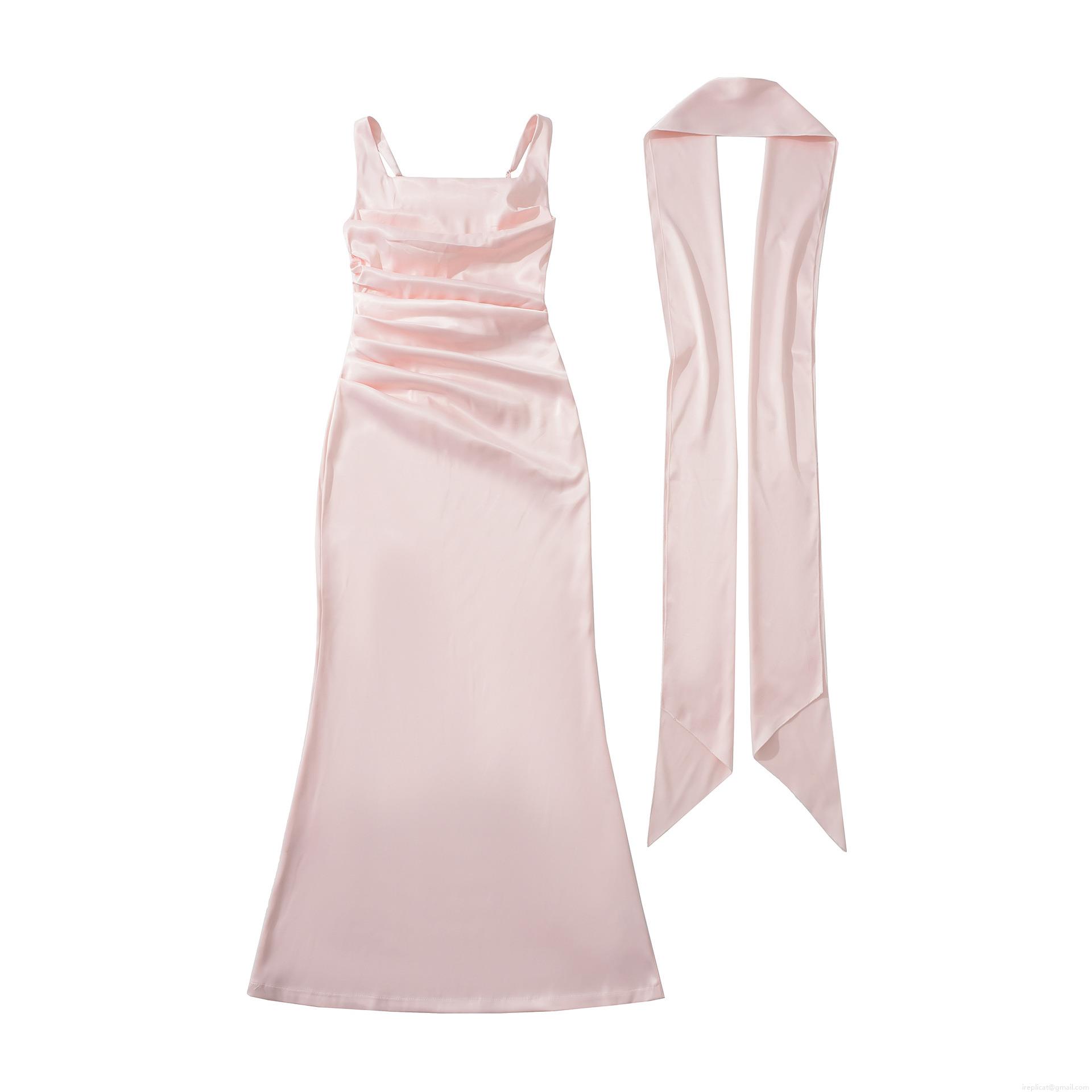 • Elegant Satin Spaghetti Strap Maxi Dress For Women Ruched Fishbone Corset Bodycon Evening Party Long Dress With Matching Neck Scarf Slim Fit Formal Banquet Wedding Guest Gown