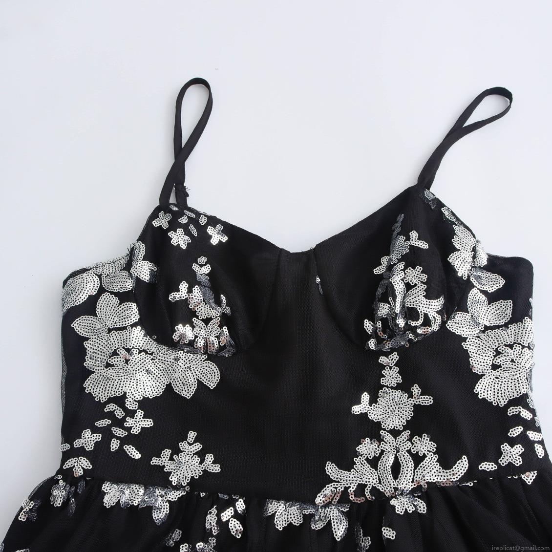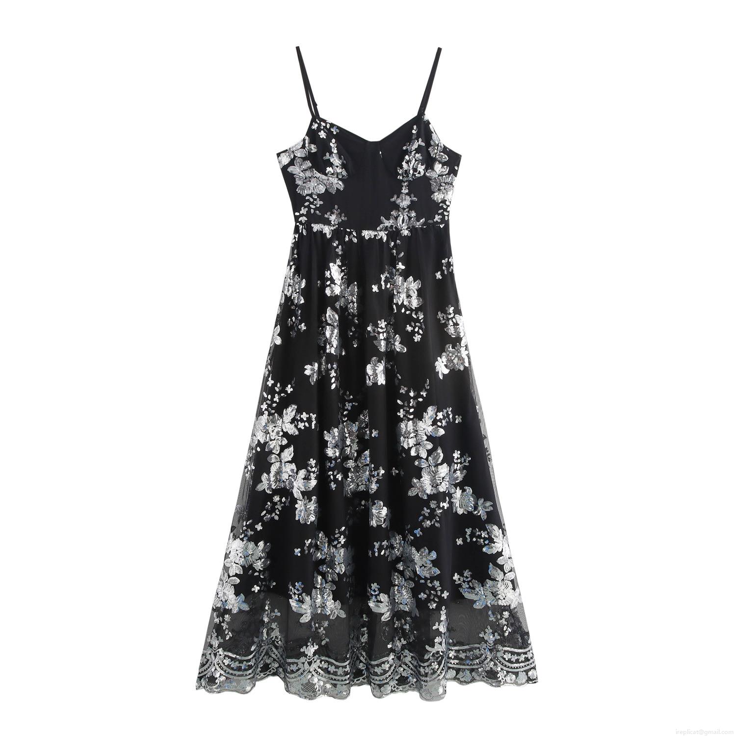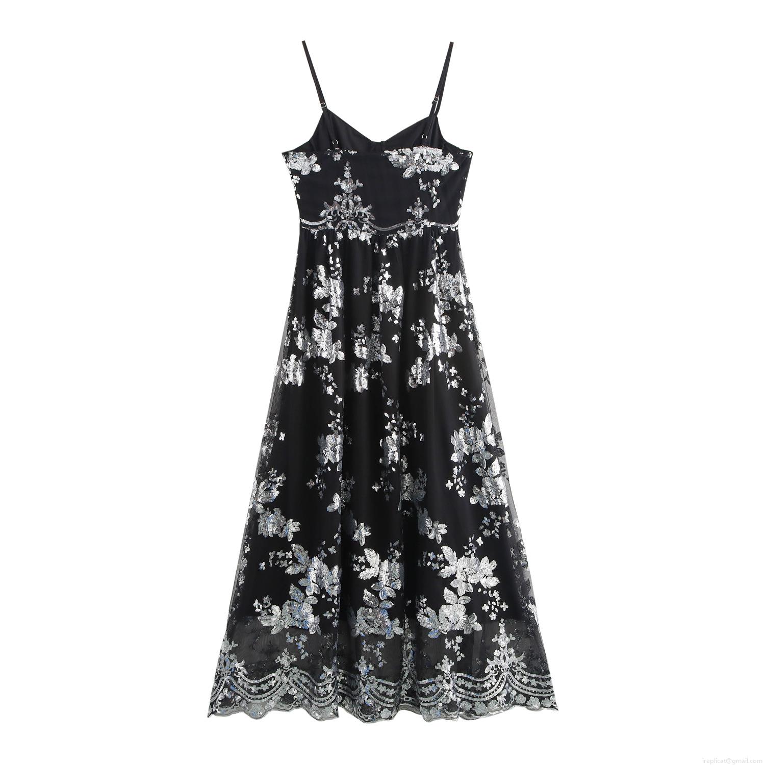 Elegant Sequin Flower Embroidery Spaghetti Strap Maxi Dress For Women Sexy V-Neck Backless High Waist Evening Party Banquet Long Gown Prom Dress