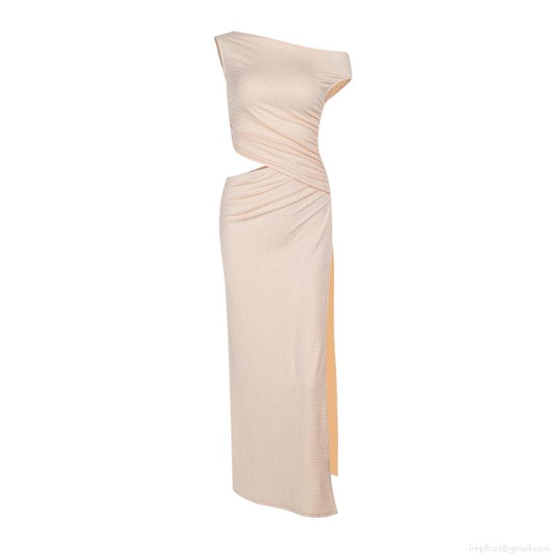 Solid Color, Sequin, One Shoulder, Hollow Out, Pleats, High Fork, Rhinestone Decoration