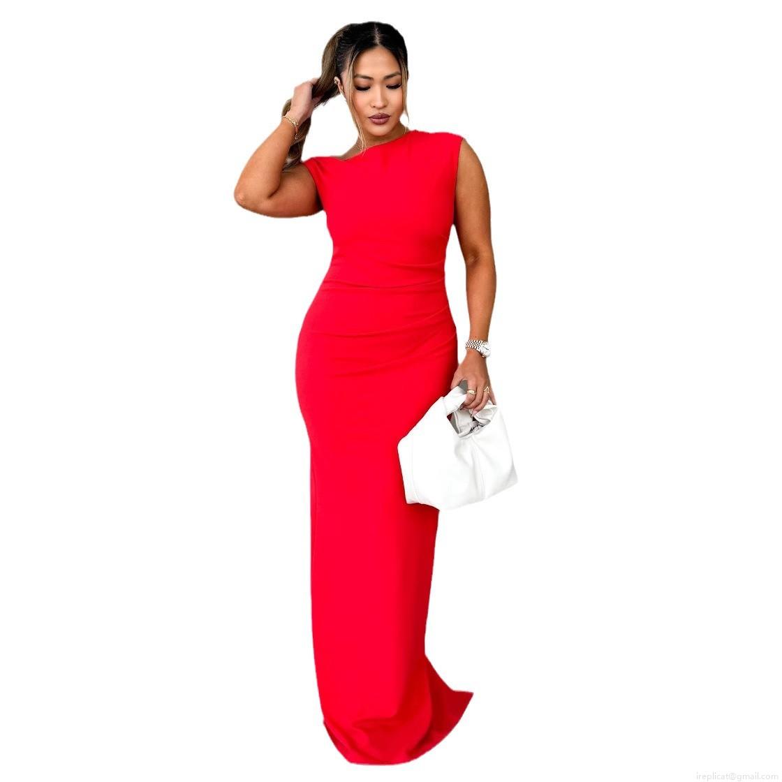 Elegant Sexy One Shoulder Maxi Dress Ruched Sleeveless Bodycon Floor Length Back Slit Evening Party Banquet Formal Long Gown For Women