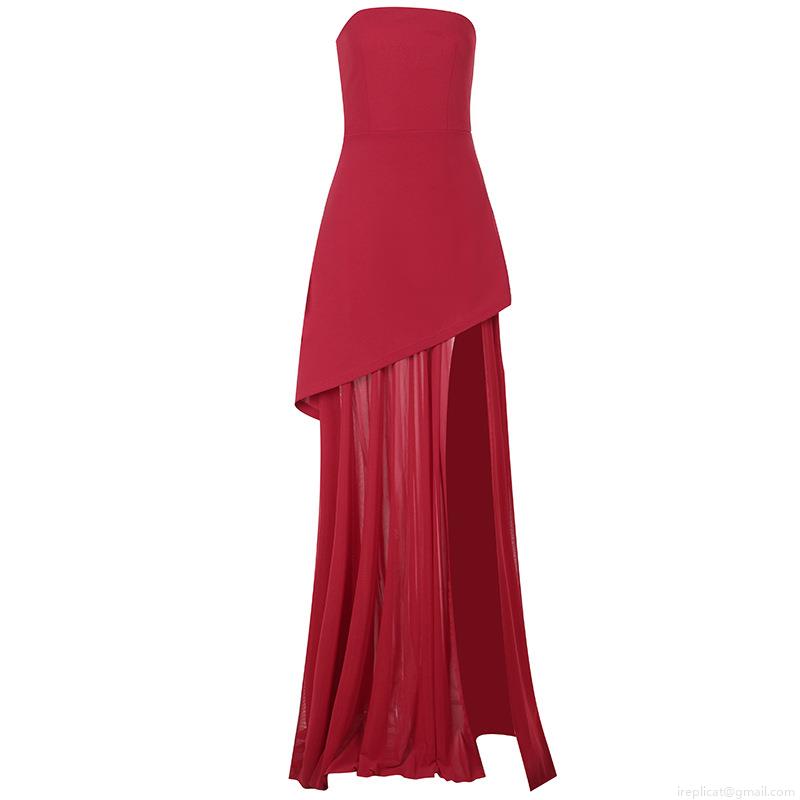 • Elegant Strapless High Slit Bodycon Maxi Dress For Women Mesh Patchwork Sexy Backless Evening Party Prom Gown Socialite Style Chic Formal Dress