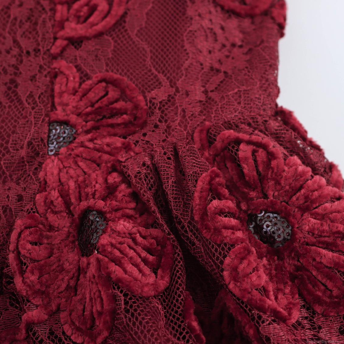Elegant Wine Red Sequin Floral Lace Spaghetti Strap Maxi Dress Vintage High Waist Slim Fit Party Evening Gown For Women