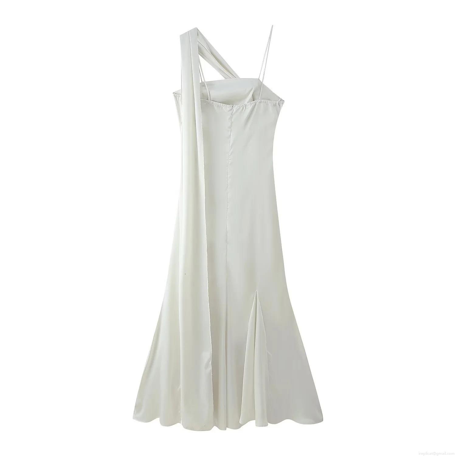 Solid Color, 3d Flowers, Pleats, Asymmetrical Design, Fishtail