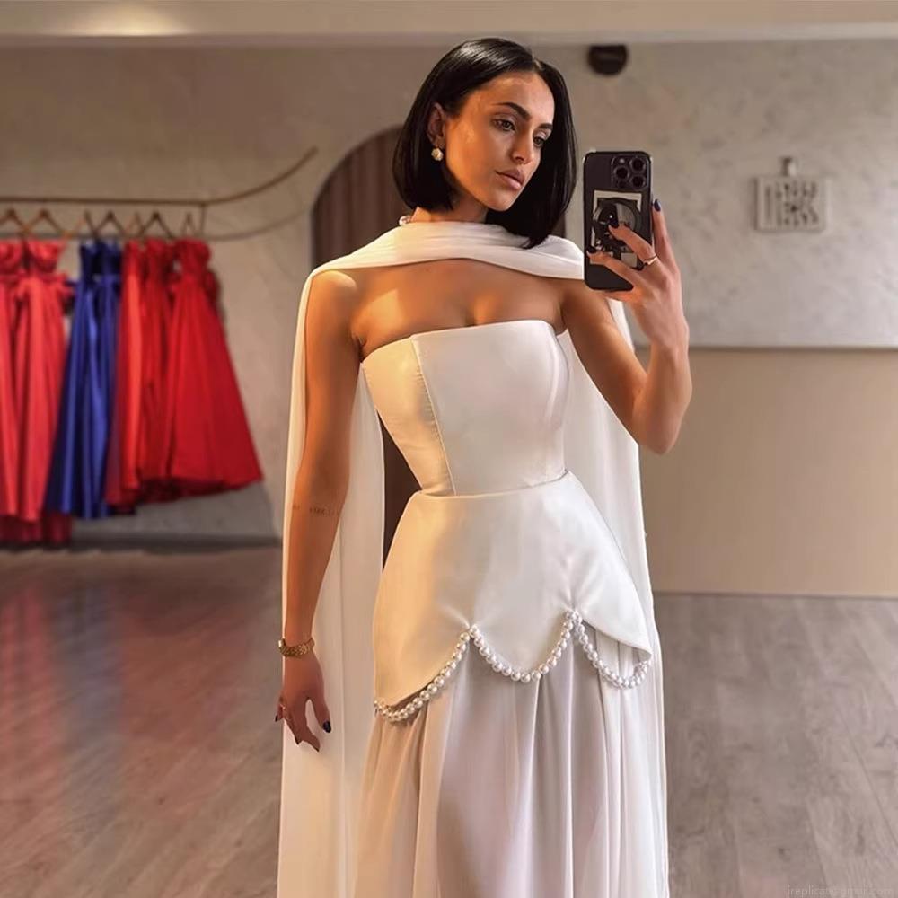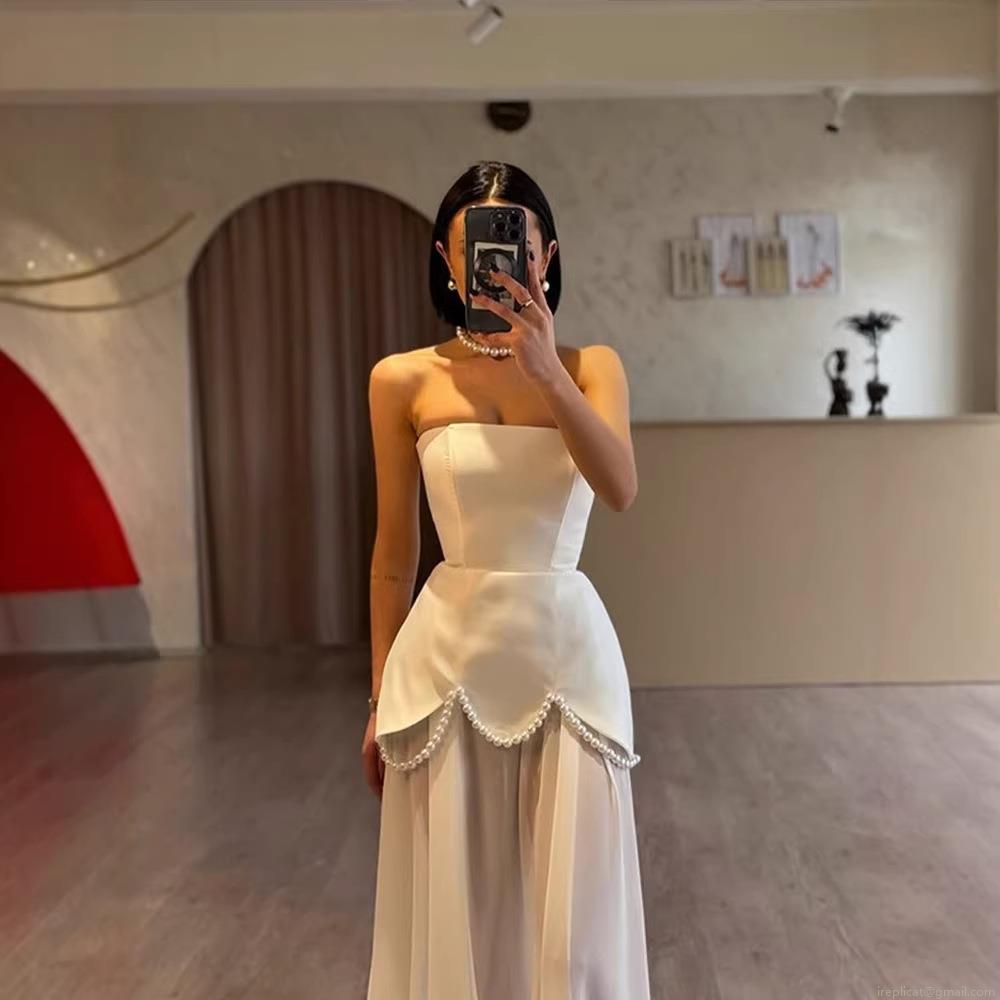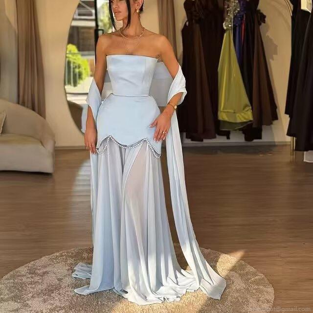 Elegant Women Satin Patchwork Maxi Dress With Pearl Beading Long Streamer Halter Neck Bodycon Evening Party Wedding Gown Dress