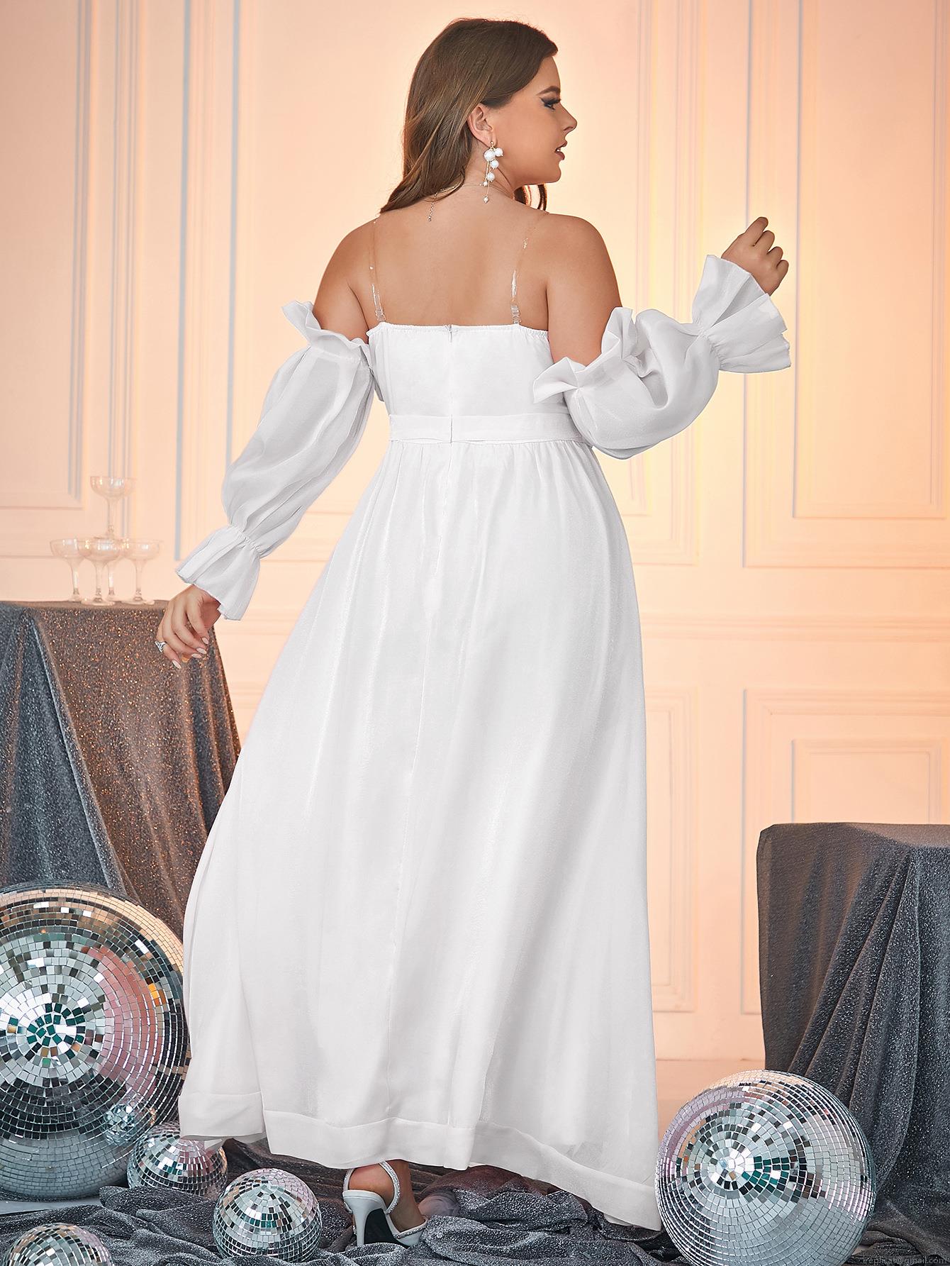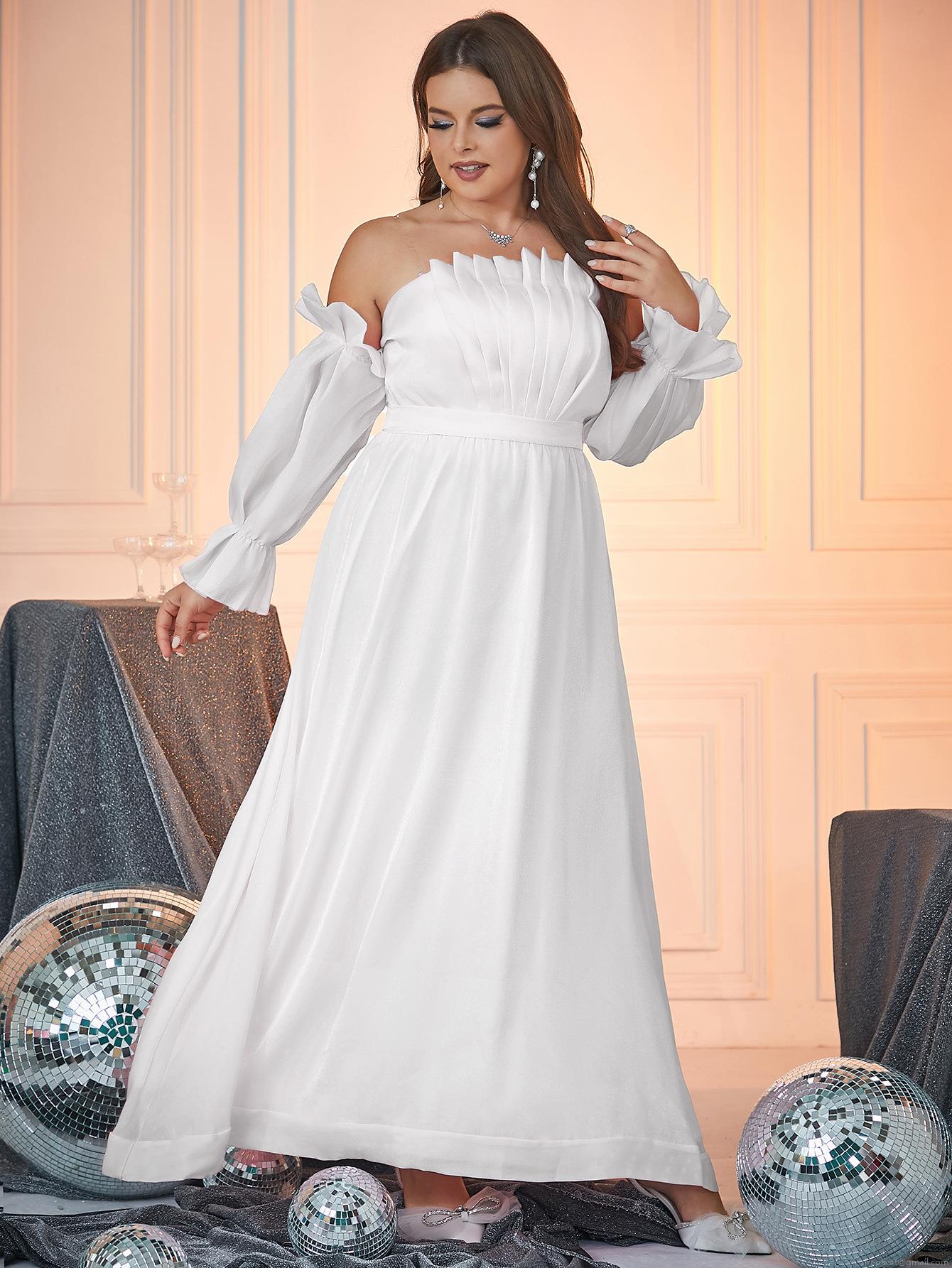 • Plus Size Off Shoulder Maxi Dress Elegant Satin Finish Polyester Lantern Sleeve Ruffle Ruched Lace Party Evening Formal Gown For Women