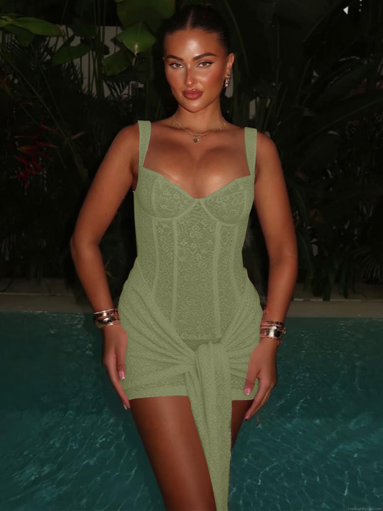 • Sexy Lace Corset Mini Dress For Women V Neck Spaghetti Strap Fishbone Bodycon Party Evening Banquet Tying Waist Splicing Nylon Spandex Formal Short Dress