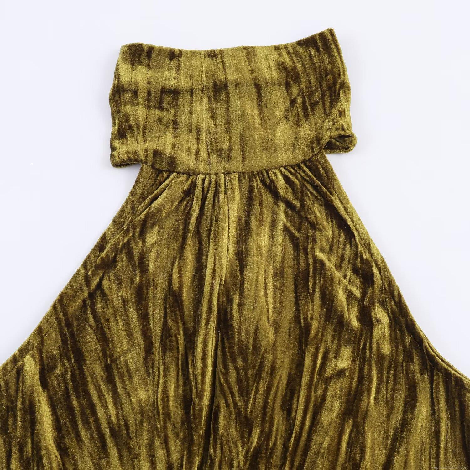 • Sexy Olive Green Velvet Halter Neck Cutout Maxi Dress With Rhinestone Buckle Women Elegant Pleated Bodycon Evening Party Dress