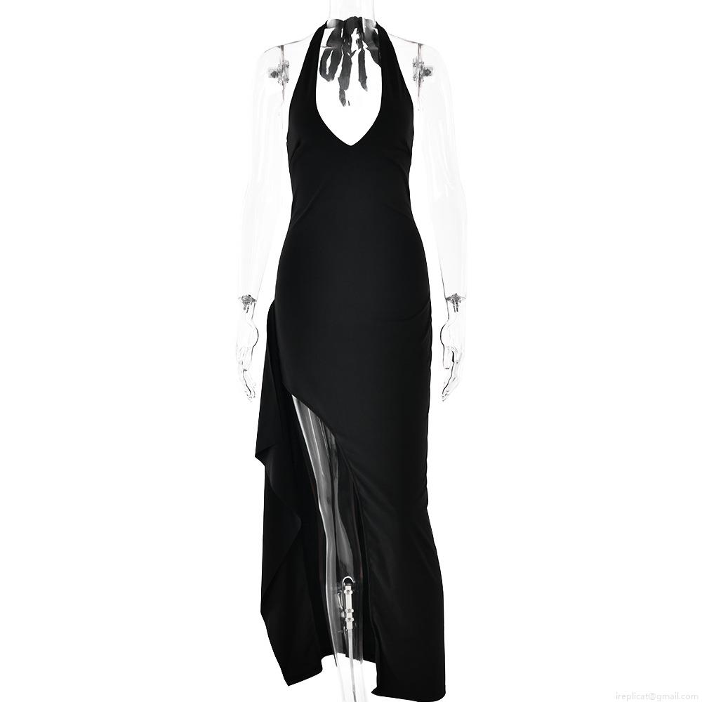 • Sexy V Neck Halter Backless Long Dress Polyester Milk Silk High Slit Evening Gown For Women Party Wedding Clubwear Slim Fit Solid Color Maxi Dress