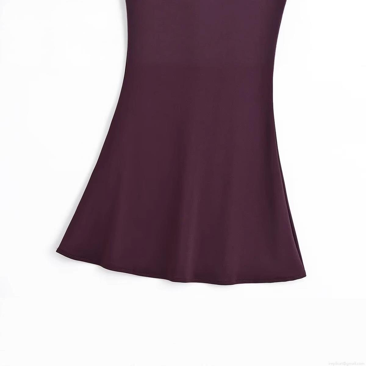 • Women Elegant Deep Purple Polyester Off-Shoulder Fishtail Evening Dress Backless Slim Fit Party Maxi Gown For Banquet Wedding