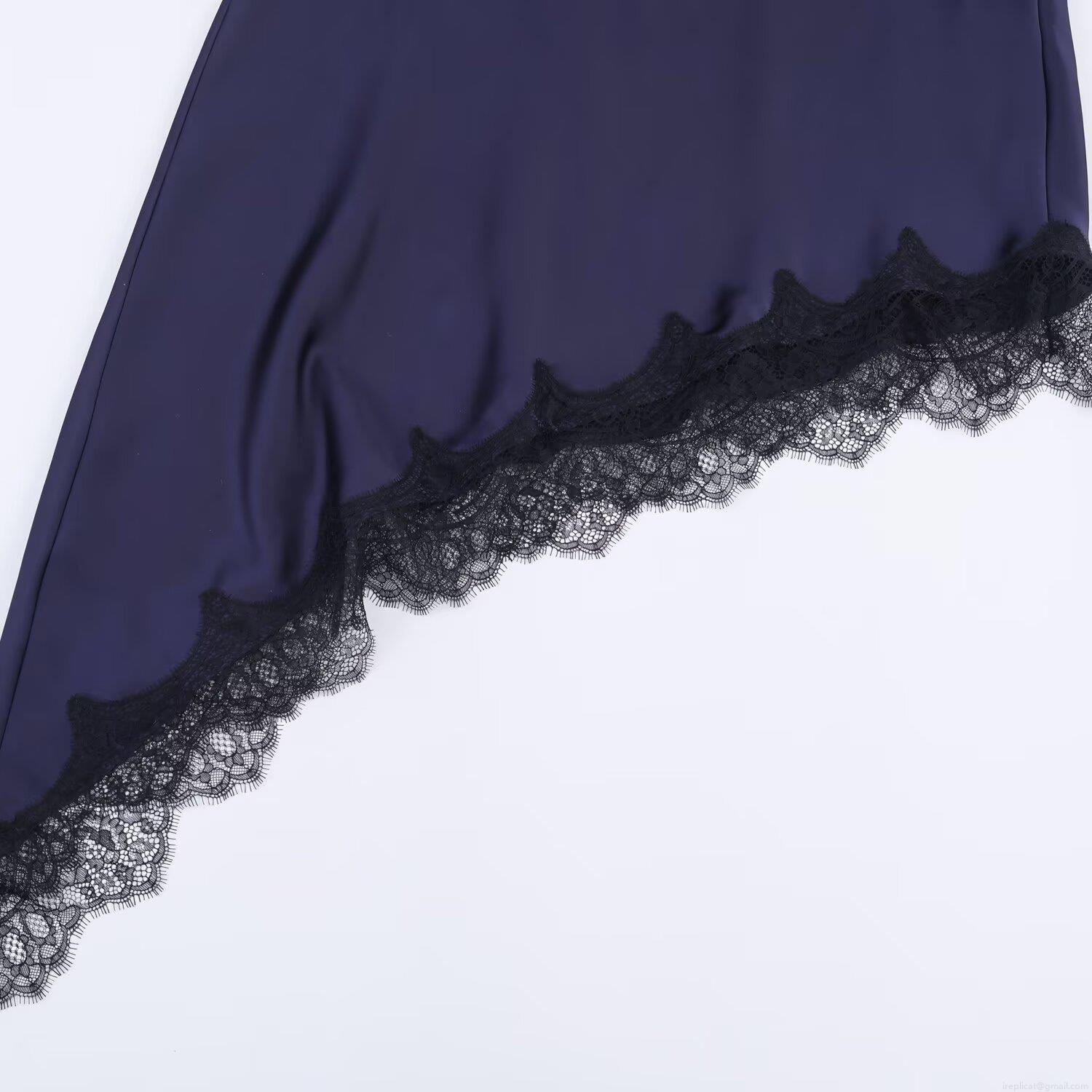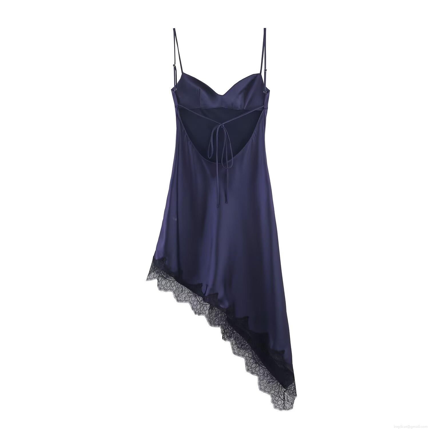 Solid Color, Lace Trim, Backless Tie, Silk Satin Texture, Asymmetrical Cut