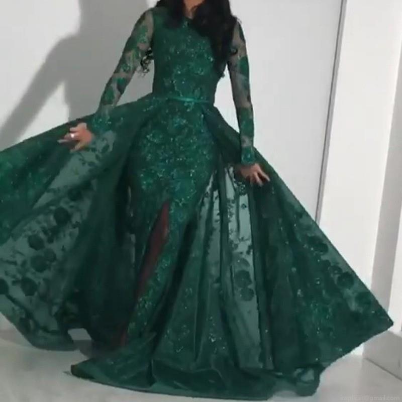 • Women Elegant Sequin Embroidery Maxi Dress Long Sleeve High Slit Evening Gown Round Neck Floral Lace Polyester Dress For Wedding Party Banquet