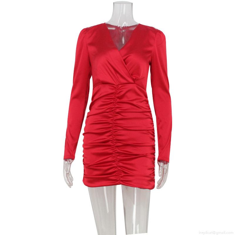 • Women Elegant V Neck Ruched Bodycon Dress Satin Long Sleeve Slim Fit Mini Party Club Dress For Ladies Vintage Sexy Evening Gown