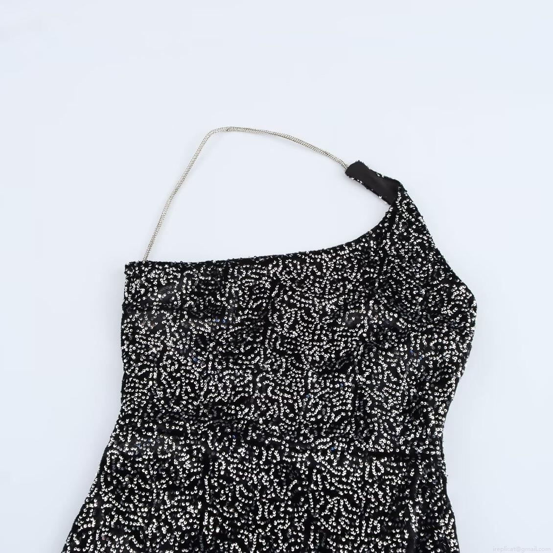 Solid Color, Irregular, Metal Chain, Waist shaping, Sequins, Neckband