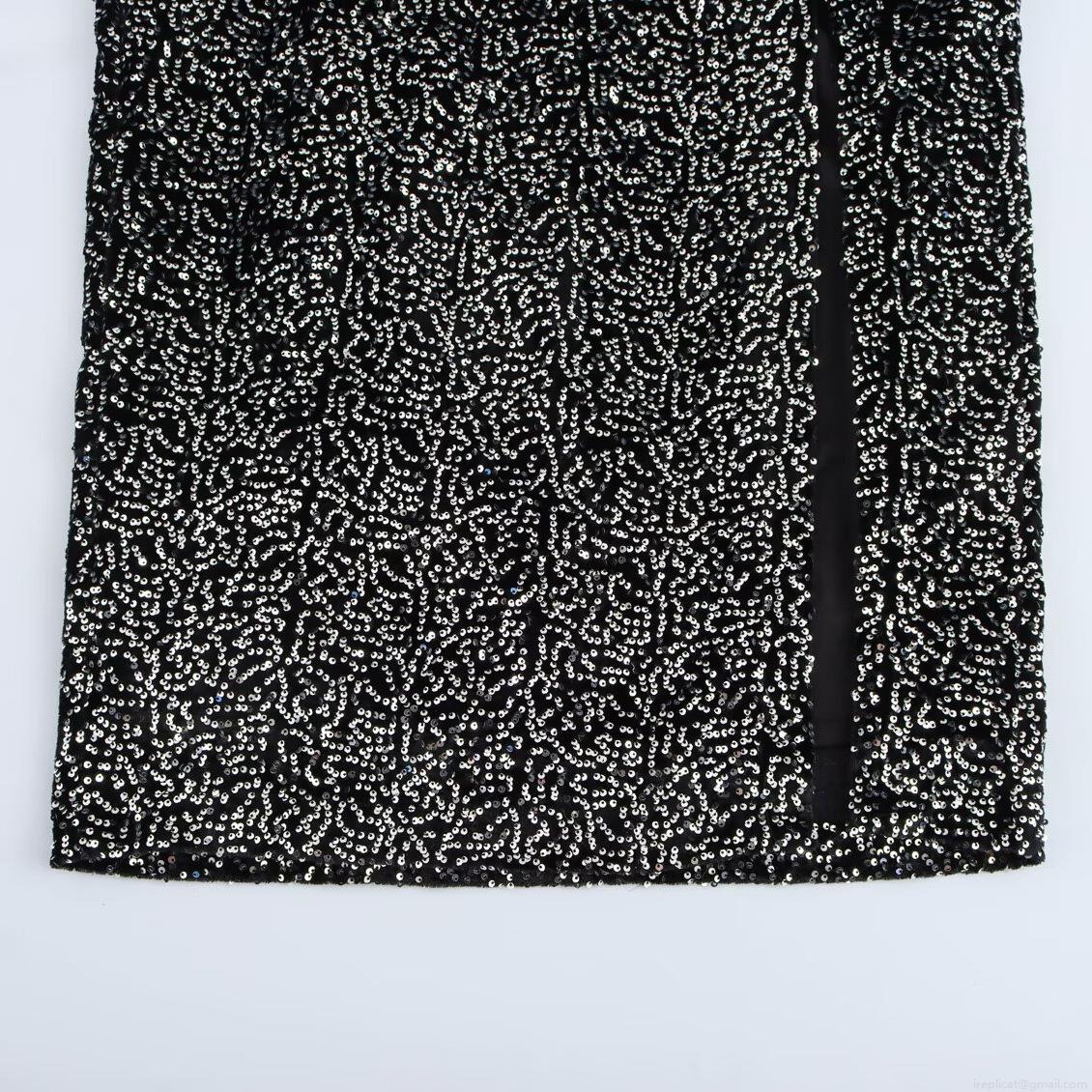 • Women Sexy Halter Sequin Maxi Dress Elegant Metal Chain Asymmetric Side Slit Evening Party Dress Slim Fit Sleeveless Gown For Banquet Wedding Guest Socialite Outfit