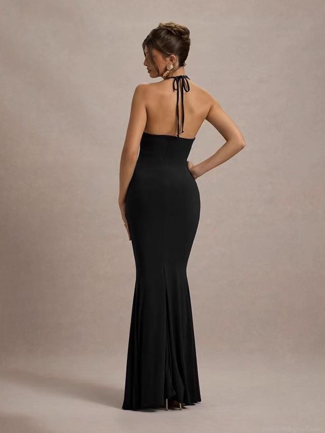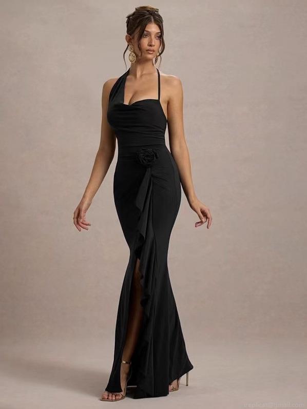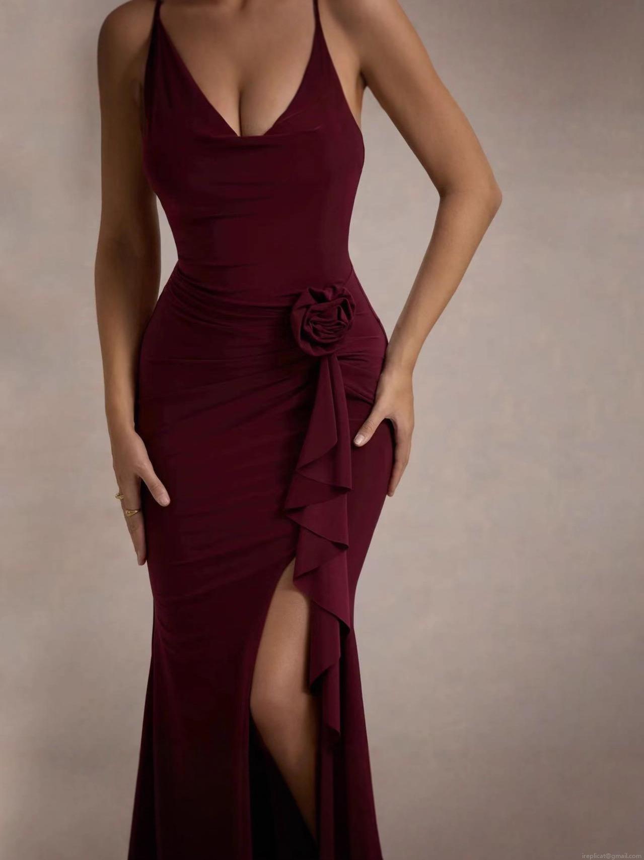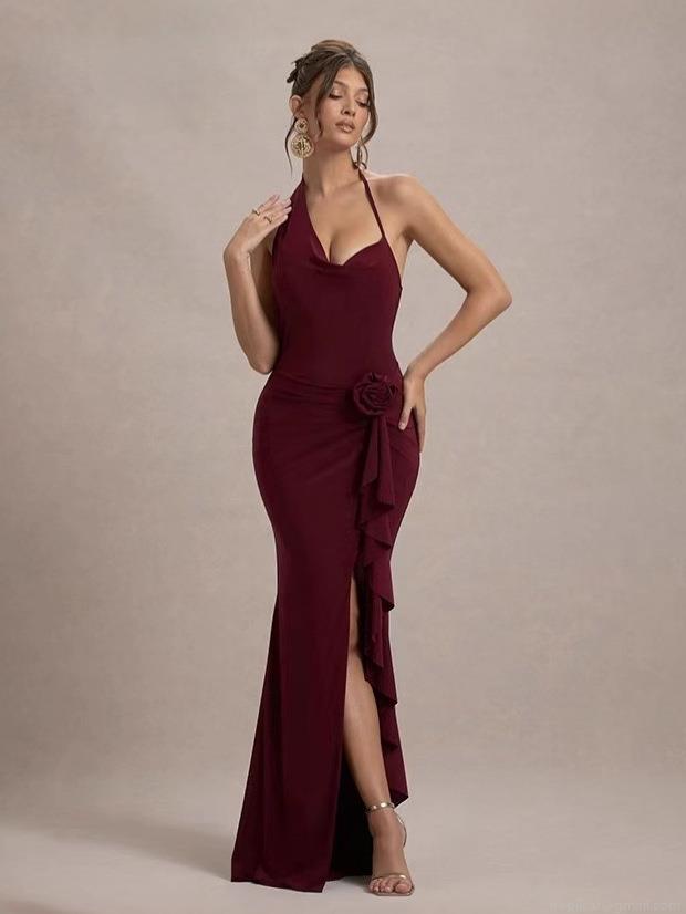 • Women Sexy Halter V Neck Evening Dress With 3D Rose Flower Slim Fit High Split Ruffle Gown Bodycon Backless Long Dress For Party Wedding Banquet Lady Elegant Formal Prom Maxi Dress