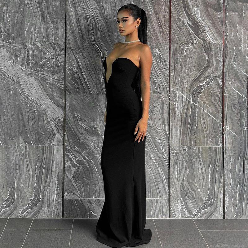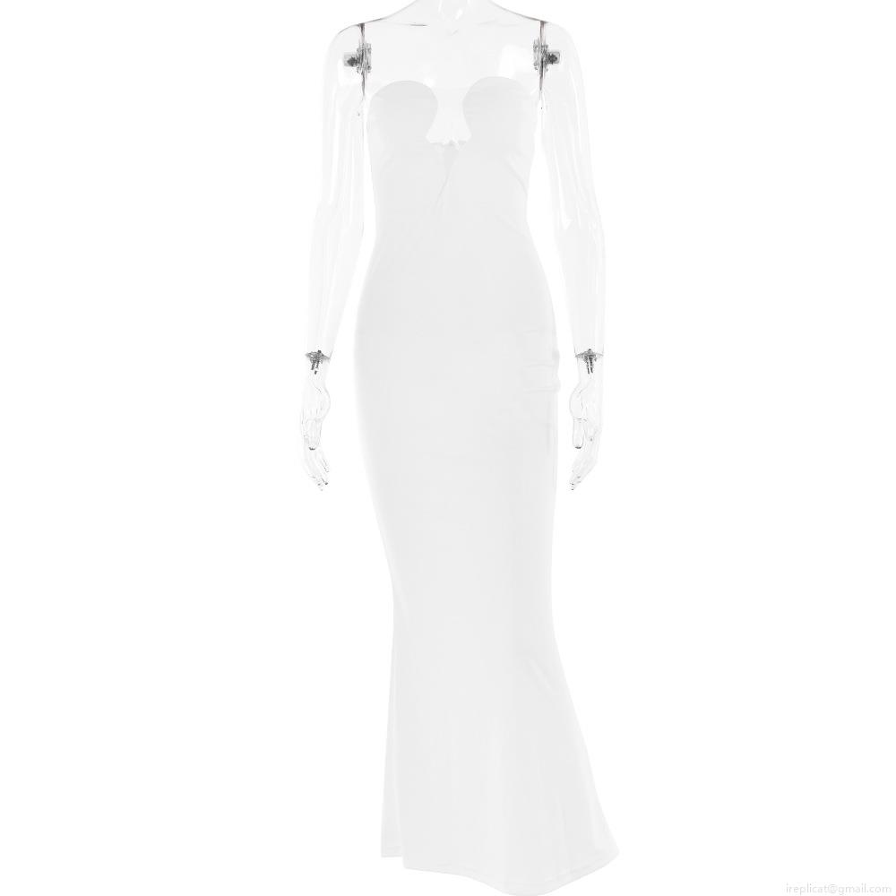 Solid Color, Splice, Mermaid Tail, Mesh, Backless, Strapless, Deep V