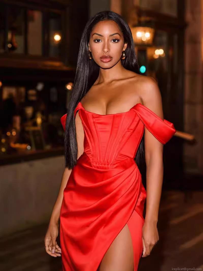 • Women Sexy Off-Shoulder Satin Party Dress Elegant Corset Fishbone Bodycon High Slit Evening Gown Solid Color Sleeveless Midi Dress For Banquet Clubwear