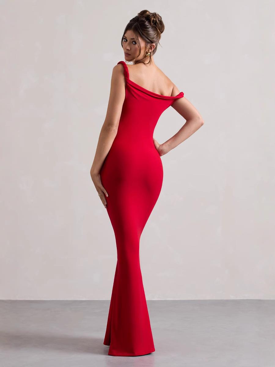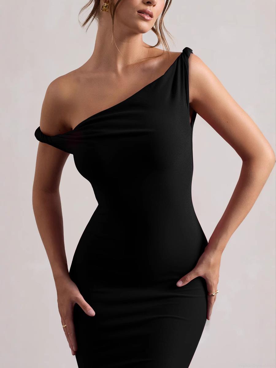 • Women Sexy One Shoulder Maxi Dress Polyester Elastane Backless Slim Fit Ruched Bodycon Evening Party Wedding Gala Night Out Solid Color Elegant Gown