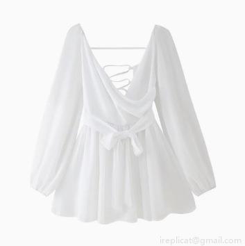 • Women Sexy V Neck Cold Shoulder Split Long Sleeve Chiffon Dress Elegant Tie Waist Solid Color Mini Dress For Party Evening Vacation Clubwear
