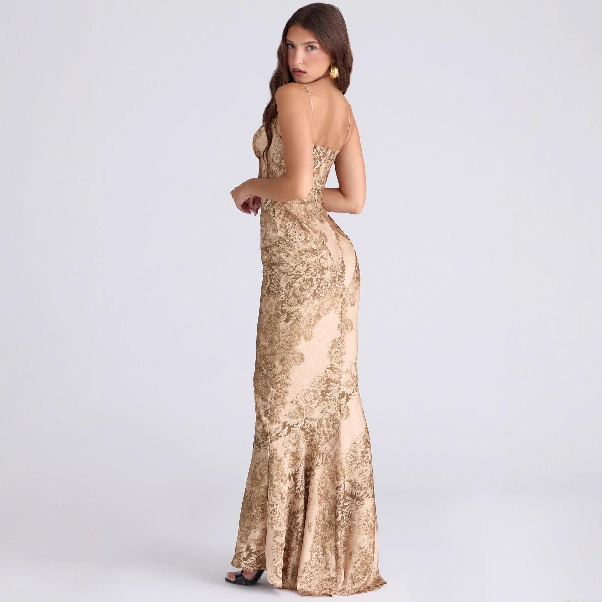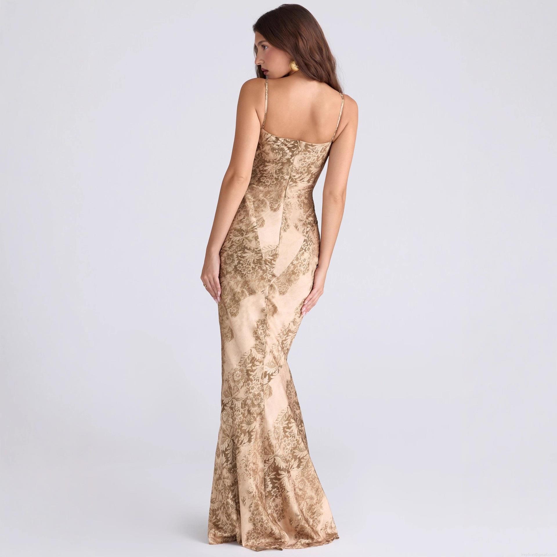 • Women's Elegant Cowl Neck Satin Floral Slip Maxi Dress Sexy Backless Fishtail Bodycon Long Evening Party Dress For Banquet Wedding Guests Formal