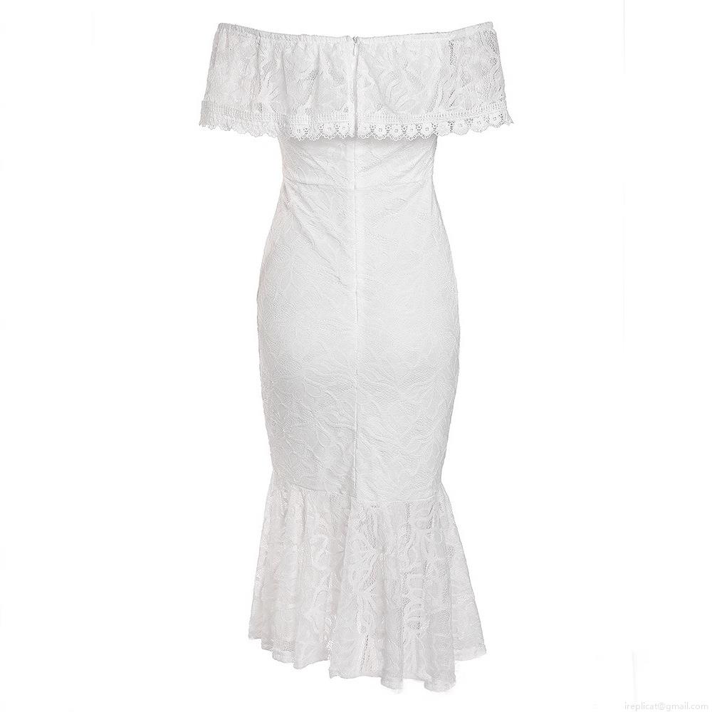 • Women's Elegant Lace Polyester Off-shoulder Fishtail Dress Sexy Bodycon Evening Party Gown White Light Blue Black Midi Dress For Women