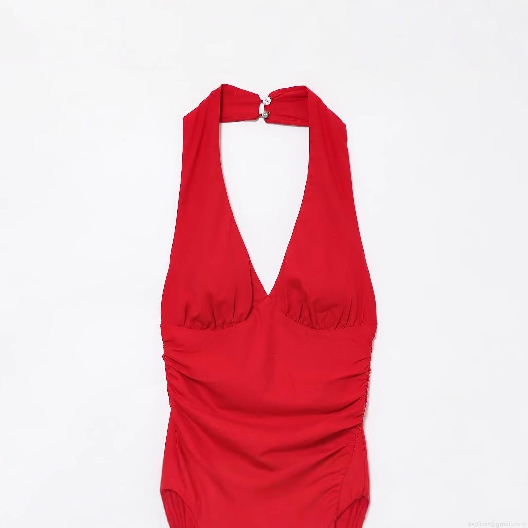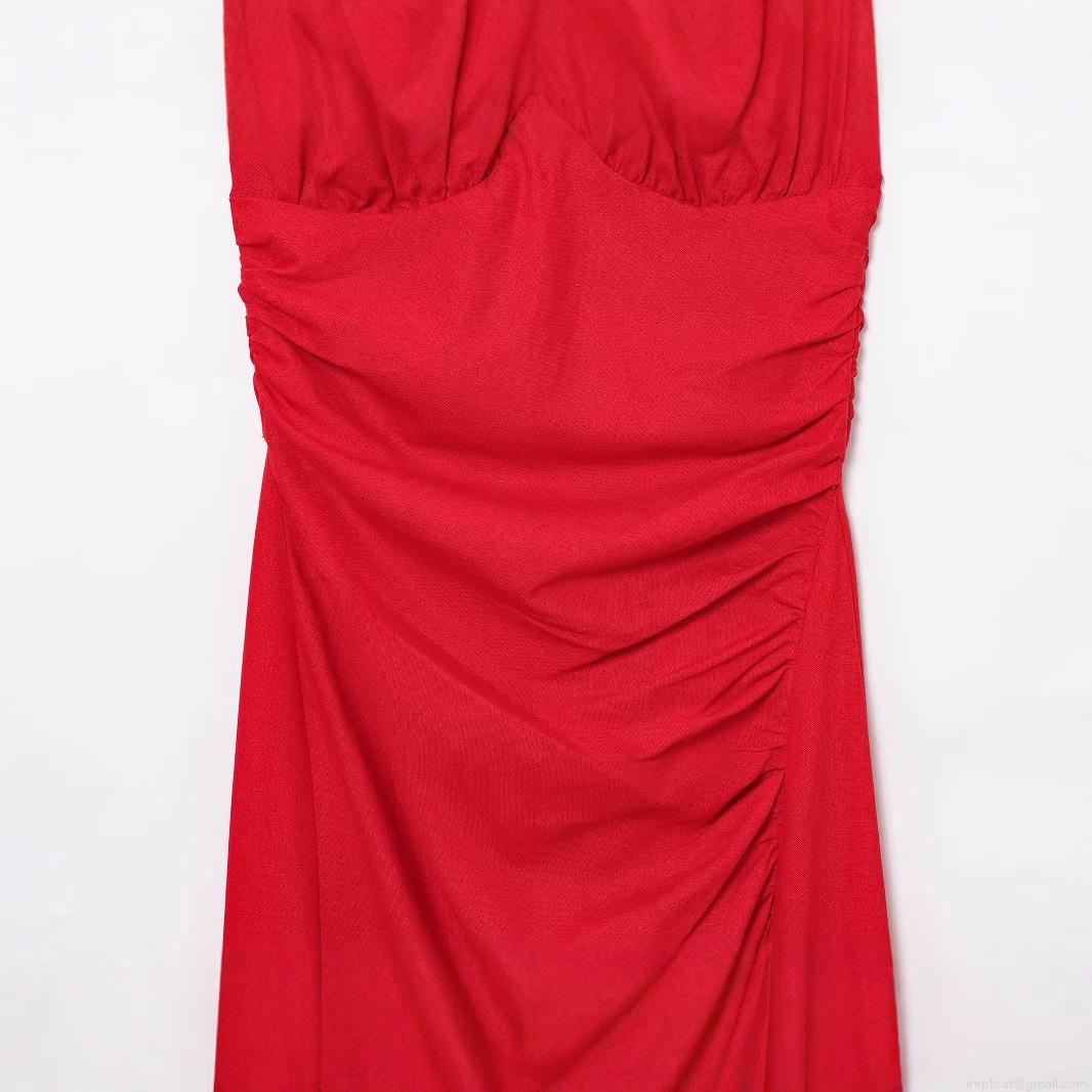 Solid Color, Pleats, Neckband, Backless, Forked
