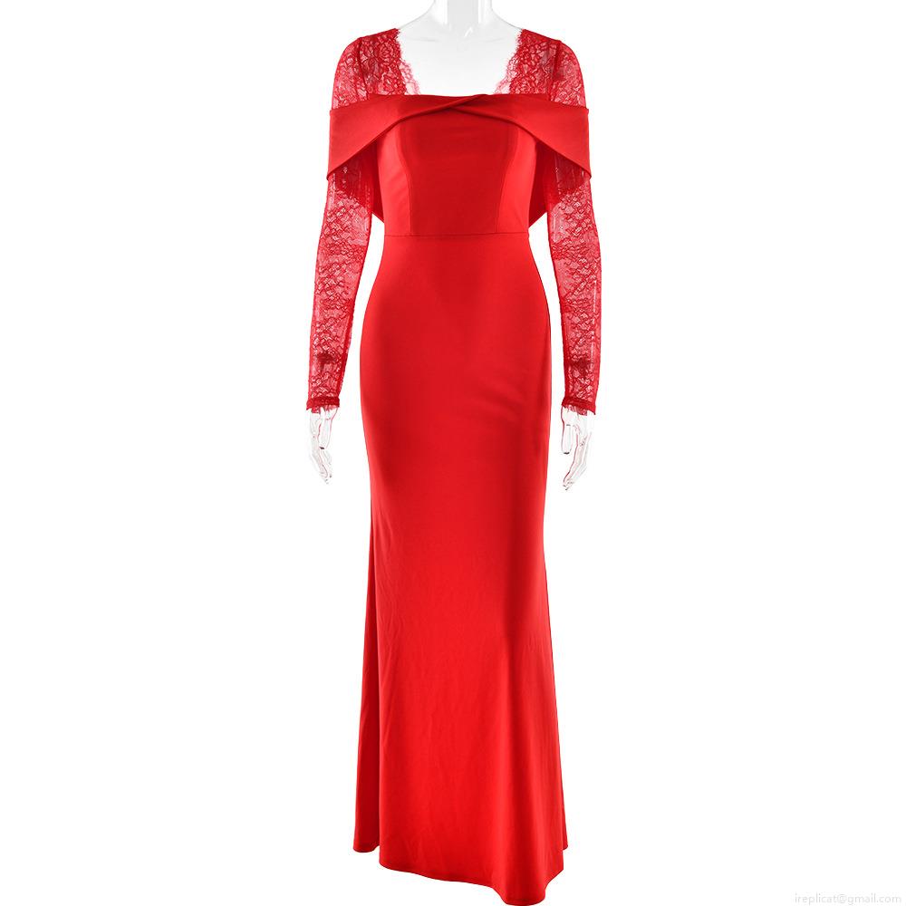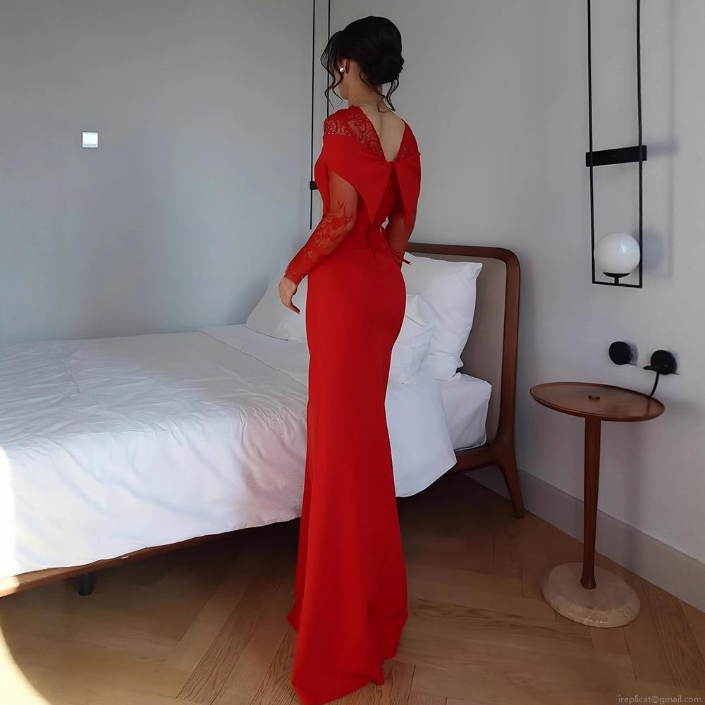 • Women's Elegant Red Lace Patchwork Evening Dress Sexy Backless Bowknot Mermaid Long Gown For Wedding Party Formal Event Banquet Prom