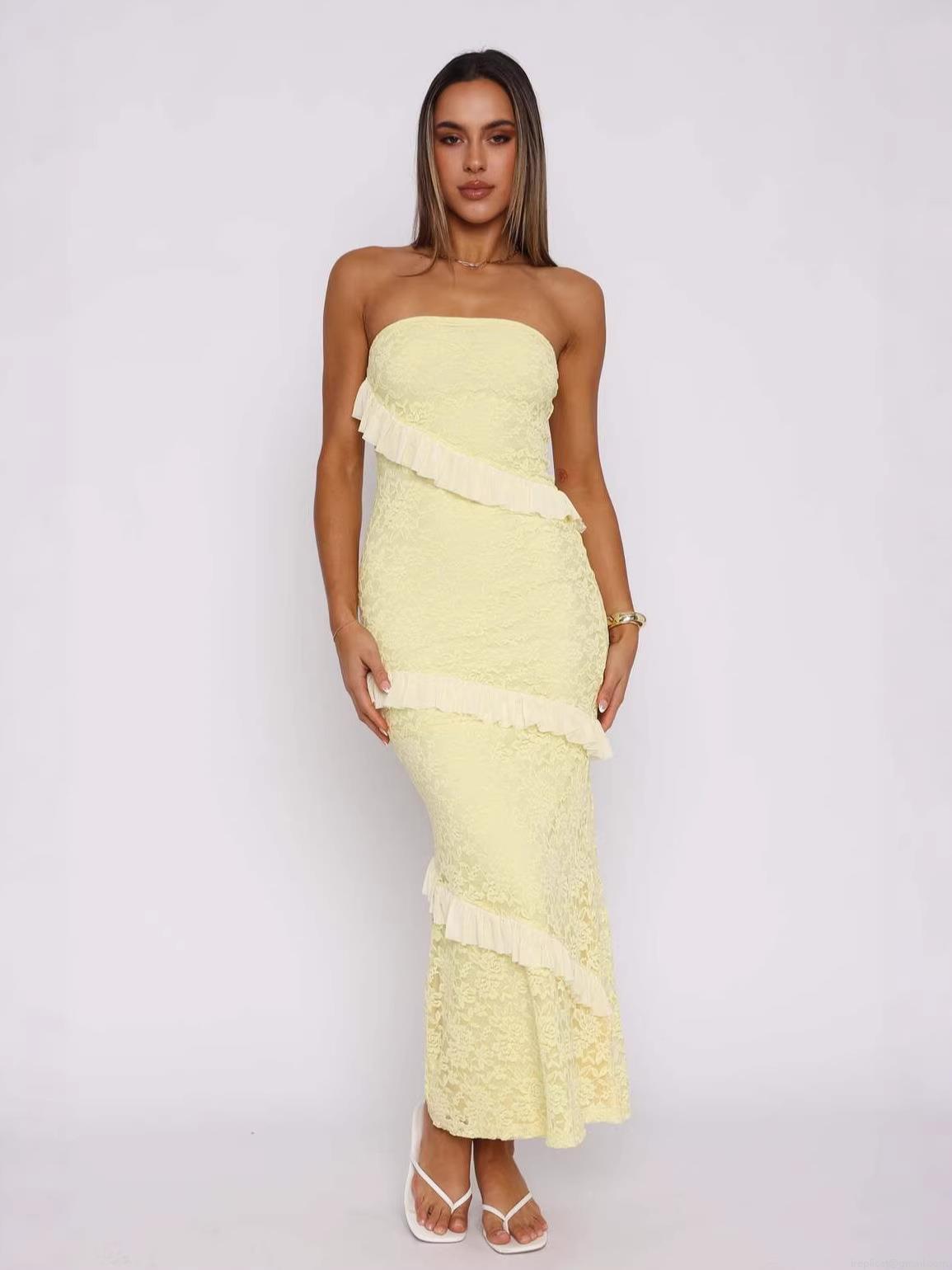 Solid Color, Lace, Pleats, Ruffles, Strapless, Layering