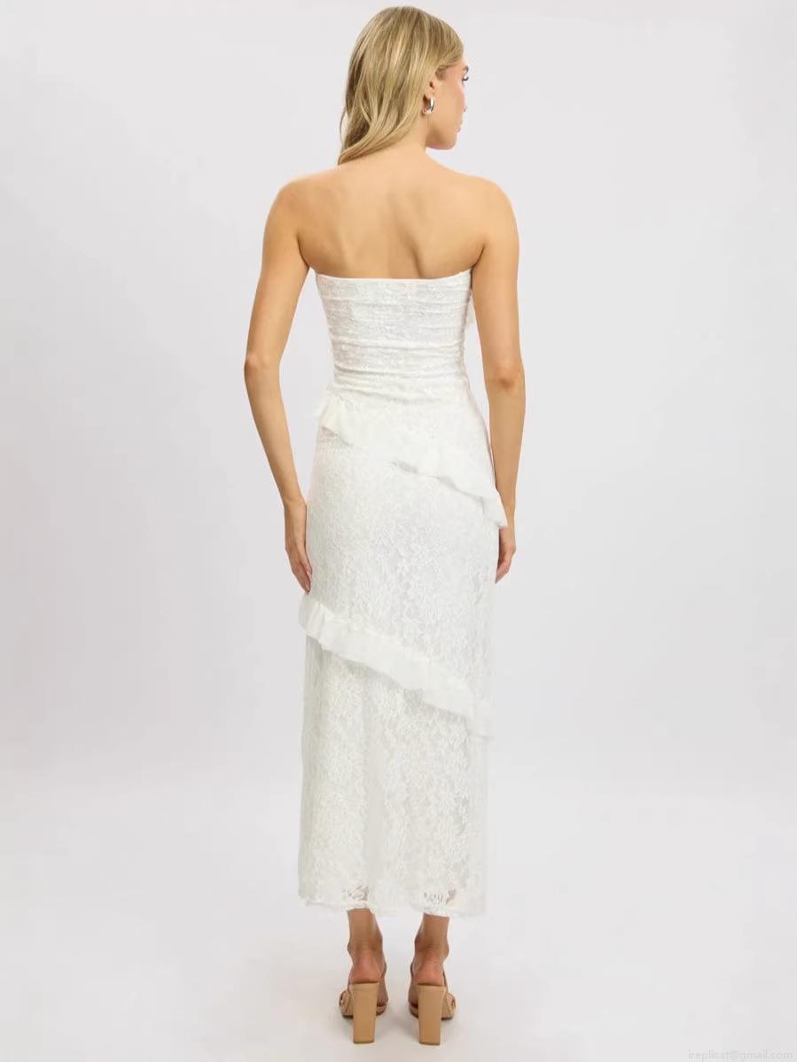 • Women's Elegant Strapless Lace Ruffle Maxi Dress Sexy Bodycon Off Shoulder Tiered Gown For Evening Party Wedding Guest Clubwear Ladies