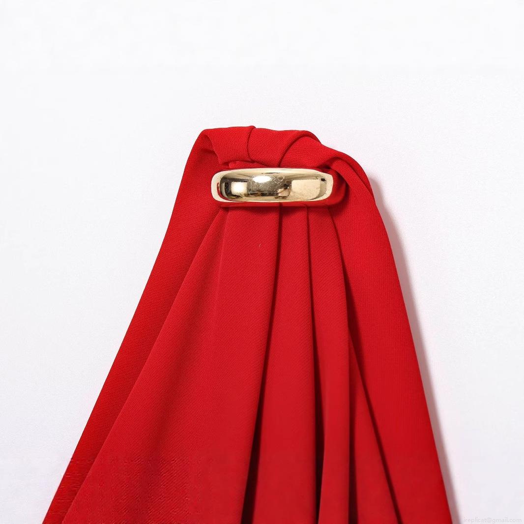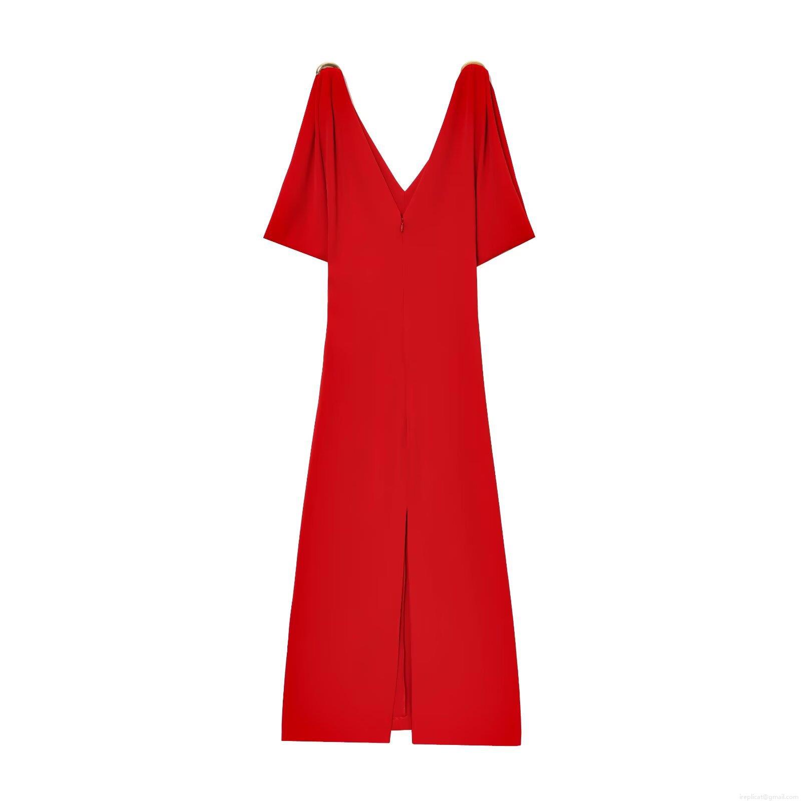 Solid Color, V-neck, Gold Metal Ring, Invisible Zipper, Draped Sleeves