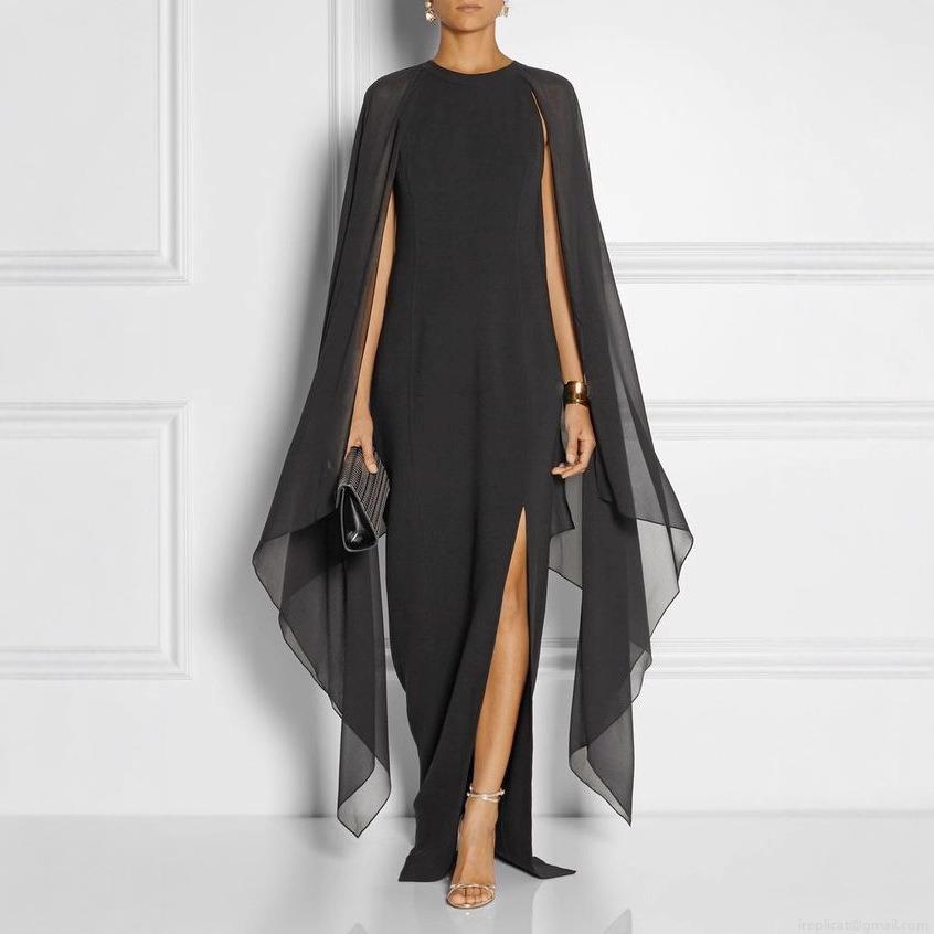 • Women's Plus Size Elegant Evening Gown Chiffon Cloak Sleeve High Slit Maxi Dress Solid Color Polyester Banquet Formal Party Wedding Dress