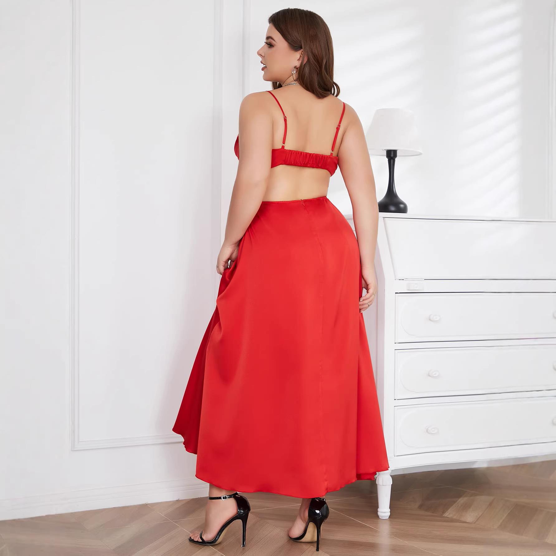 Women's Plus Size Red Satin Cami Dress Sexy Hollow Out Backless Cowl Neck Midi Evening Party Dress Sleeveless Elegant Bodycon Dress