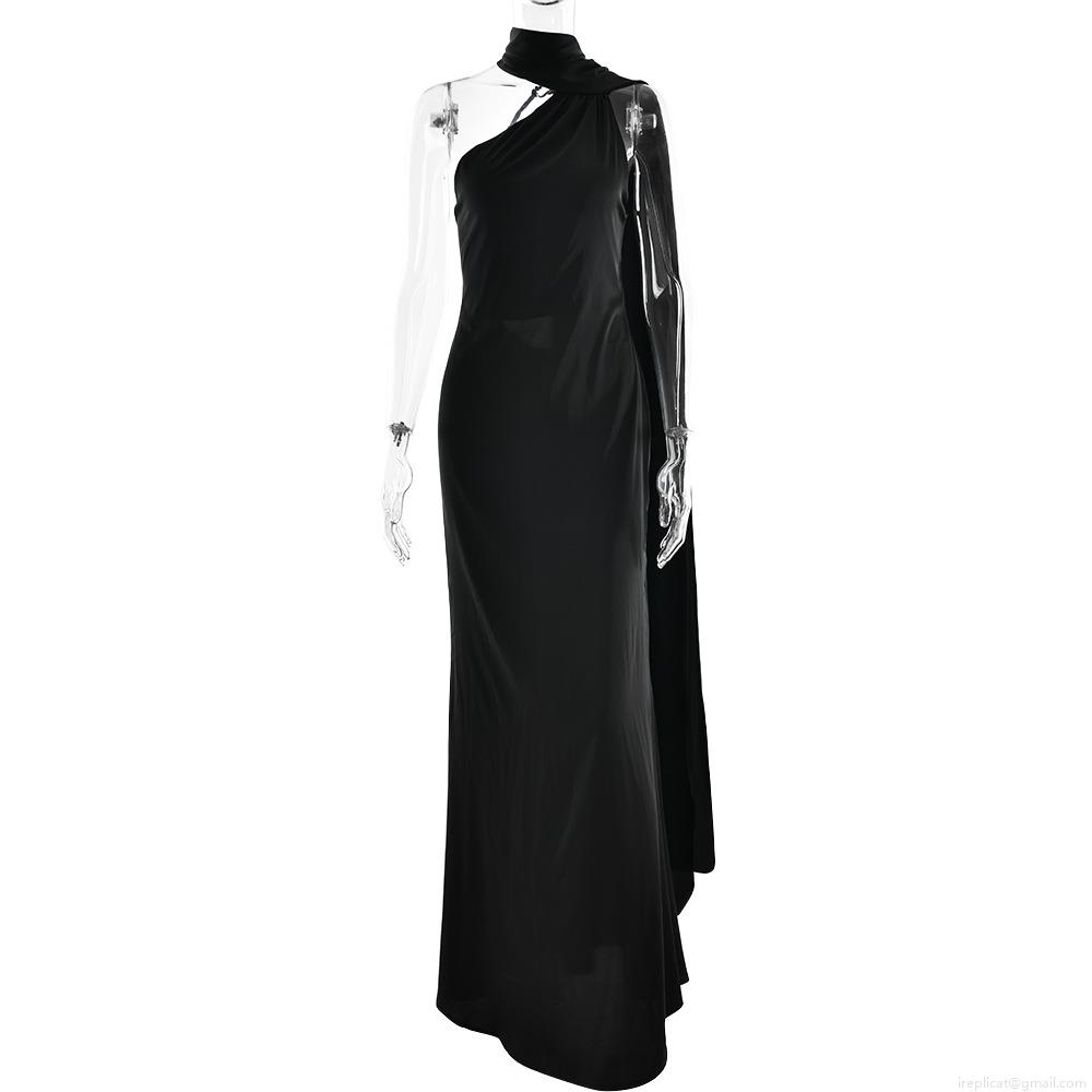 • Women's Satin Backless Halter Maxi Dress Sexy Single Shoulder Evening Gown With Streamer Long Ribbon Party Dress For Women Slim Fit Wedding Guest Outfit