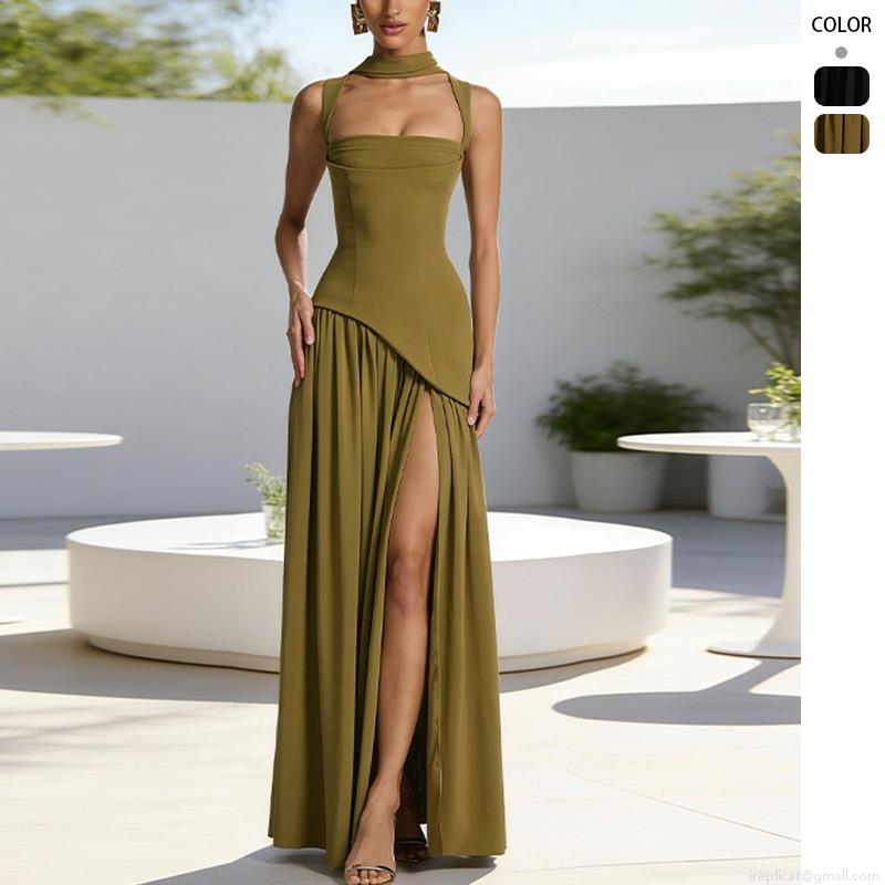 Solid Color, Scarf, Straps, Neckband, Backless, Forked