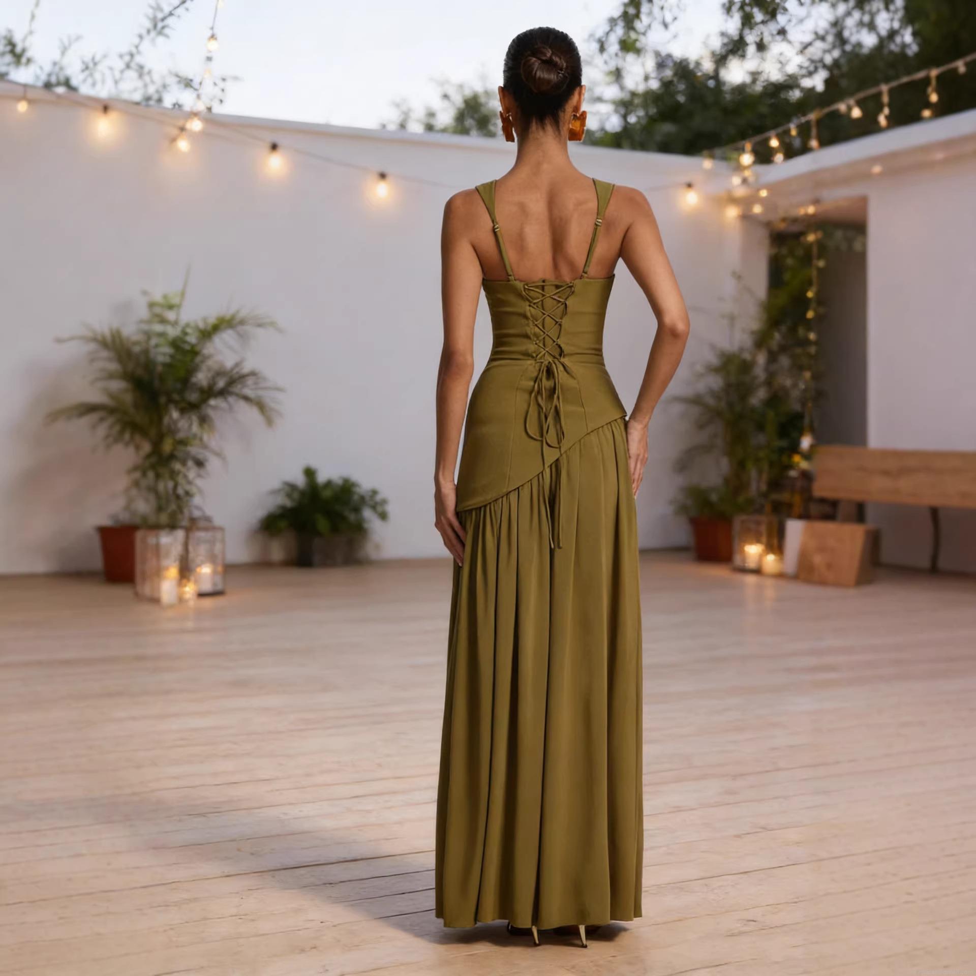 Side High Fork, Backless Cross Straps, Matching Scarf Ribbon