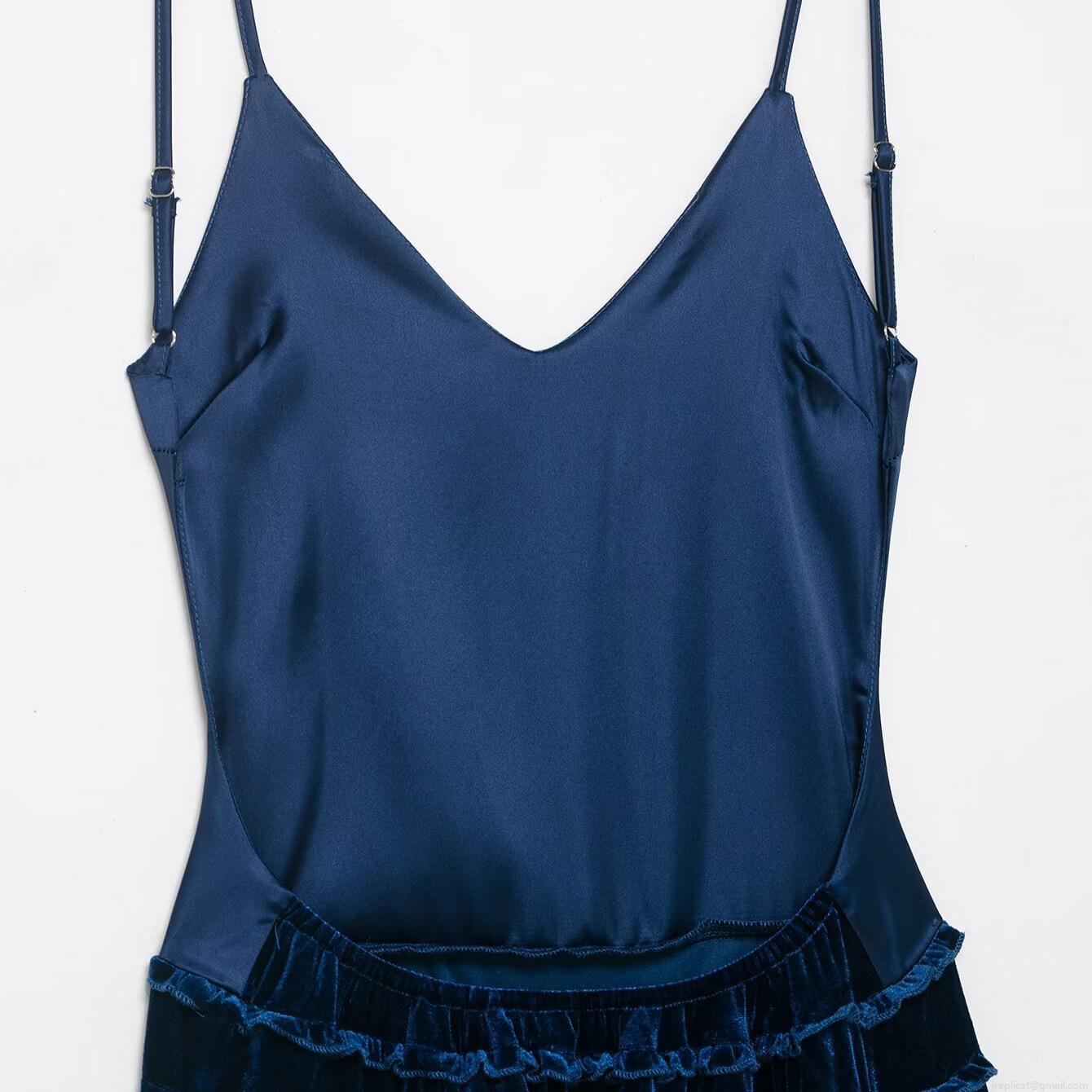 • Women's Sexy Backless Satin Velvet Tiered Ruffle Maxi Dress Elegant V Neck Sleeveless Camisole Evening Party Banquet Gown For Women