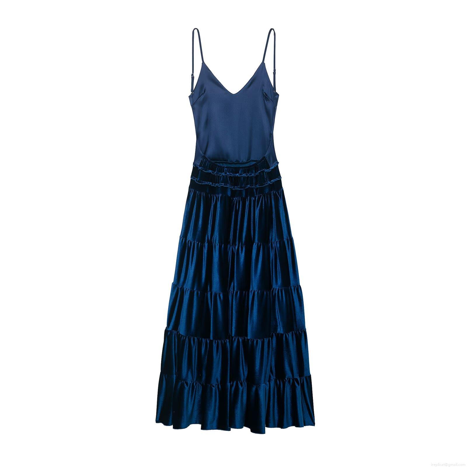 Women's Sexy Backless Satin Velvet Tiered Ruffle Maxi Dress Elegant V Neck Sleeveless Camisole Evening Party Banquet Gown For Women
