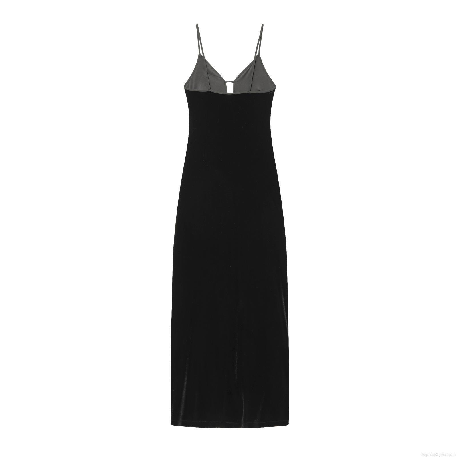 • Women's Sexy Black Velvet V-Neck Midi Dress Sleeveless Bodycon Party Dress Elegant High Waist Evening Gown Solid Patchwork Clubwear