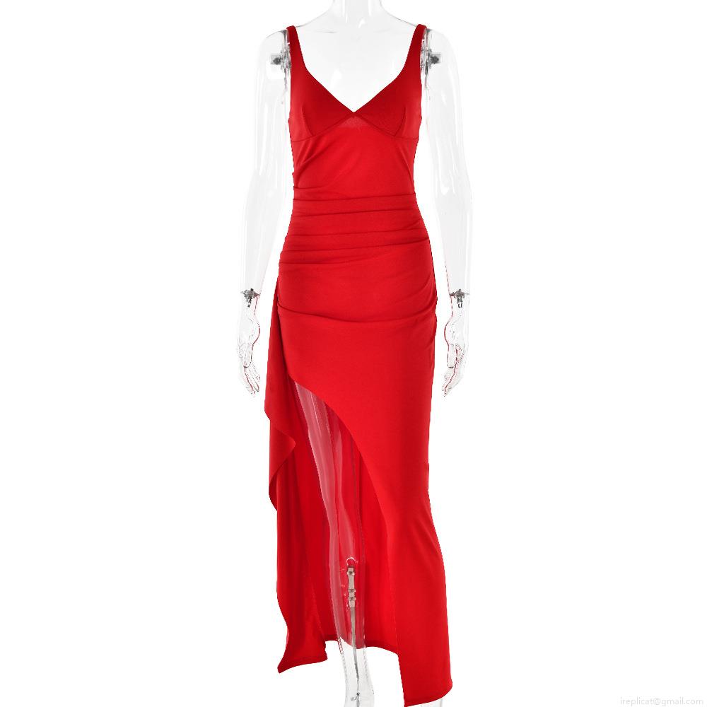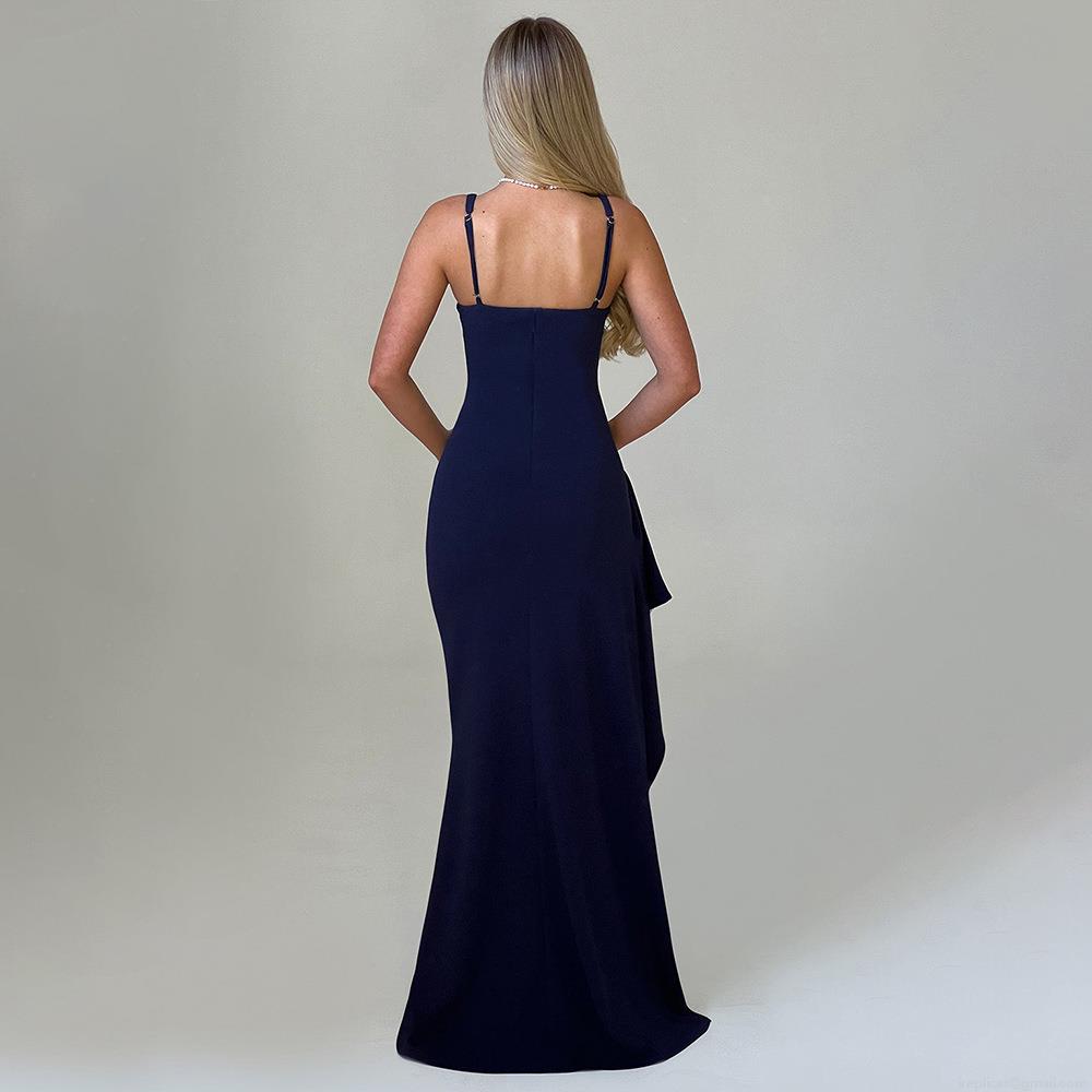 • Women's Sexy Deep V Neck Backless Maxi Dress Polyester Ruched Bodycon Evening Gown With Side Slit Ruffles For Party Night Out