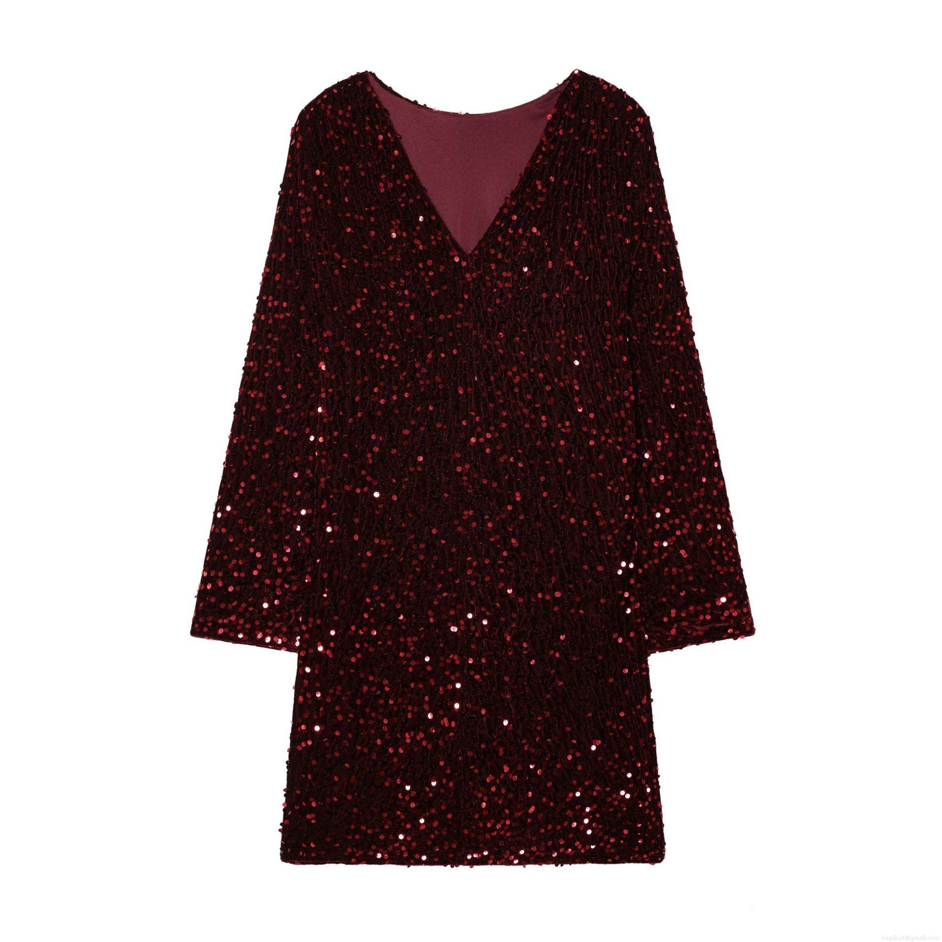 • Women's Sexy Deep V Neck Long Sleeve Sequined Mini Dress Elegant Glitter Bodycon Party Evening Night Club Cocktail Dress For Lady